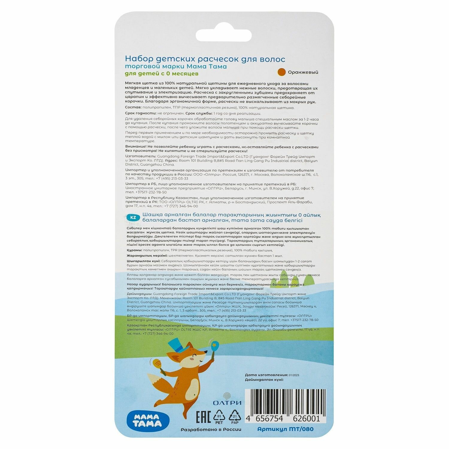 Набор расчесок детских расчесок для новорожденных мама тама оранжевый, натур. щетина, 0 мес+ интересное: