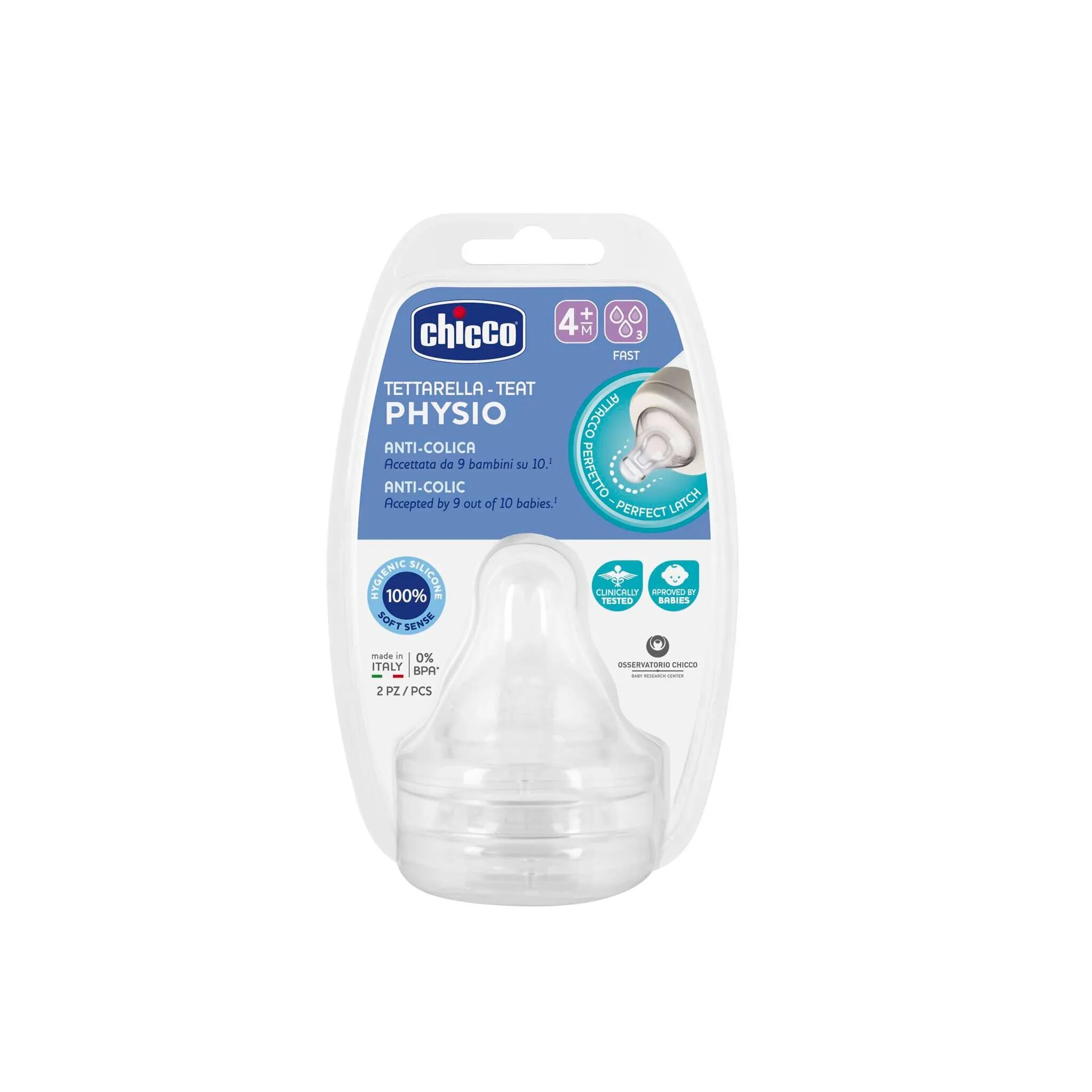 Соска силиконовая Physio для бутылочек Chicco Perfect 5 и Well-Being 4мес+ 2 шт.
