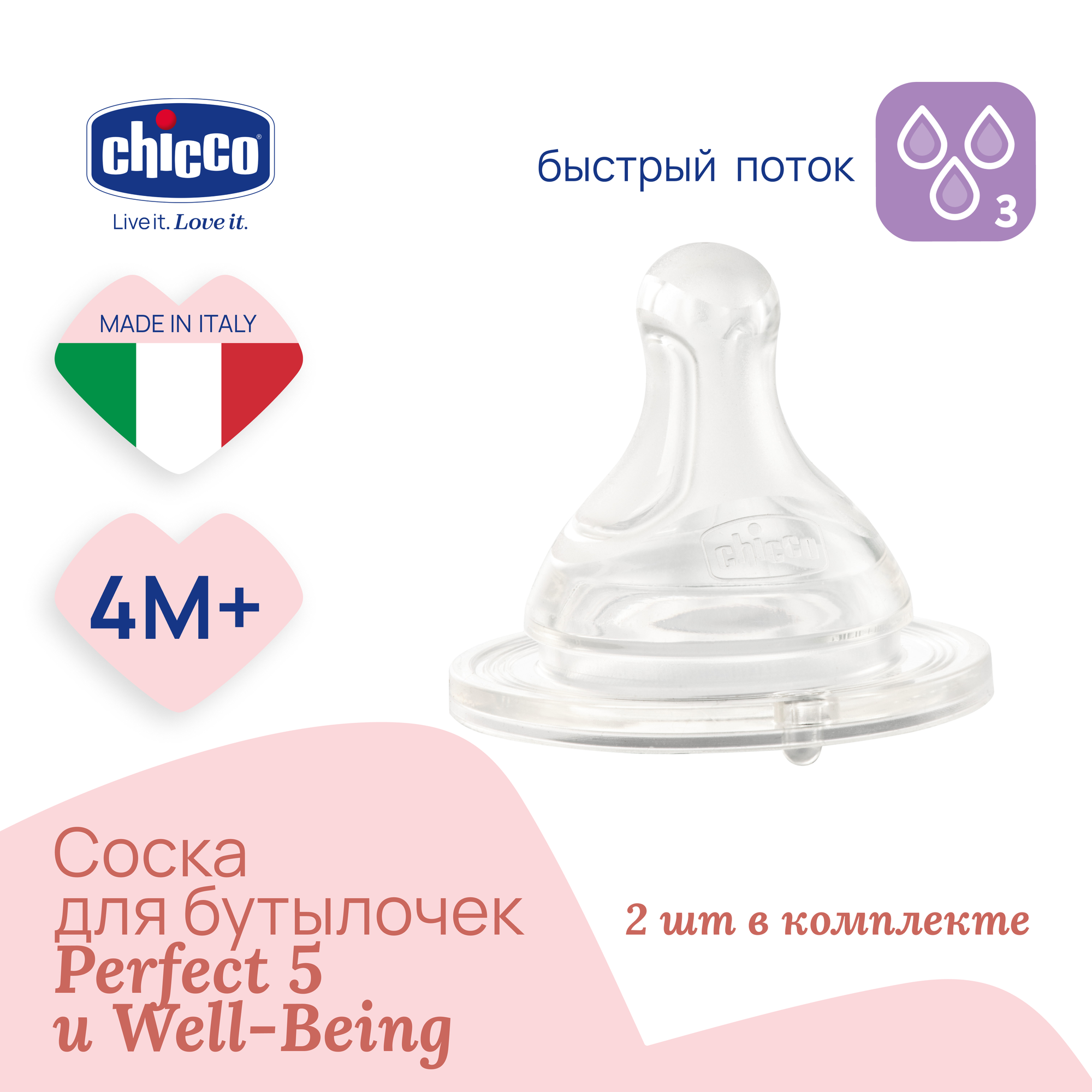 Соска силиконовая для бутылочки быстрый поток антиколиковая Chicco Perfect5 набор 2шт., от 4мес.+. Подарок для новорожденных чико и выписку из роддома. интересное: