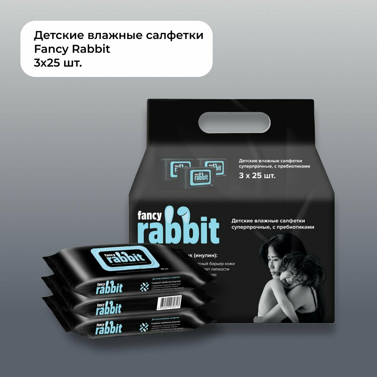 Купить Влажные салфетки детские суперпрочные FANCY RABBIT, блок 25 шт*3 уп