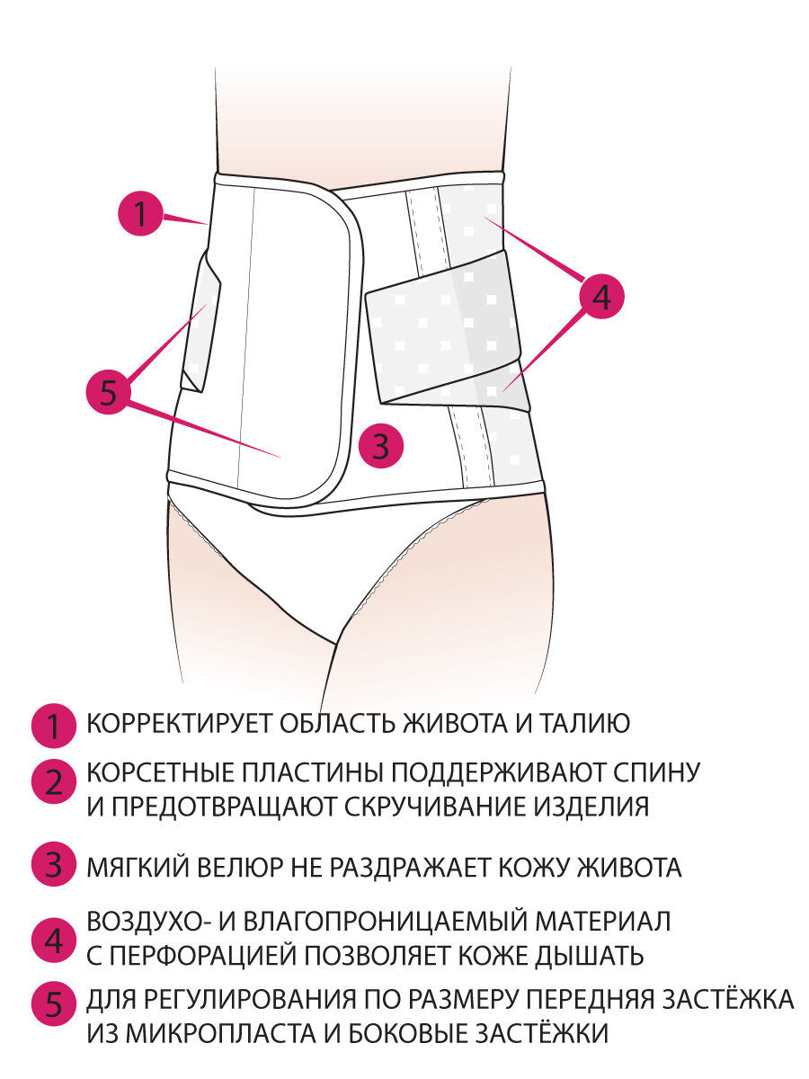 | Особенности | после кесарева сечения, регулируемый пояс |