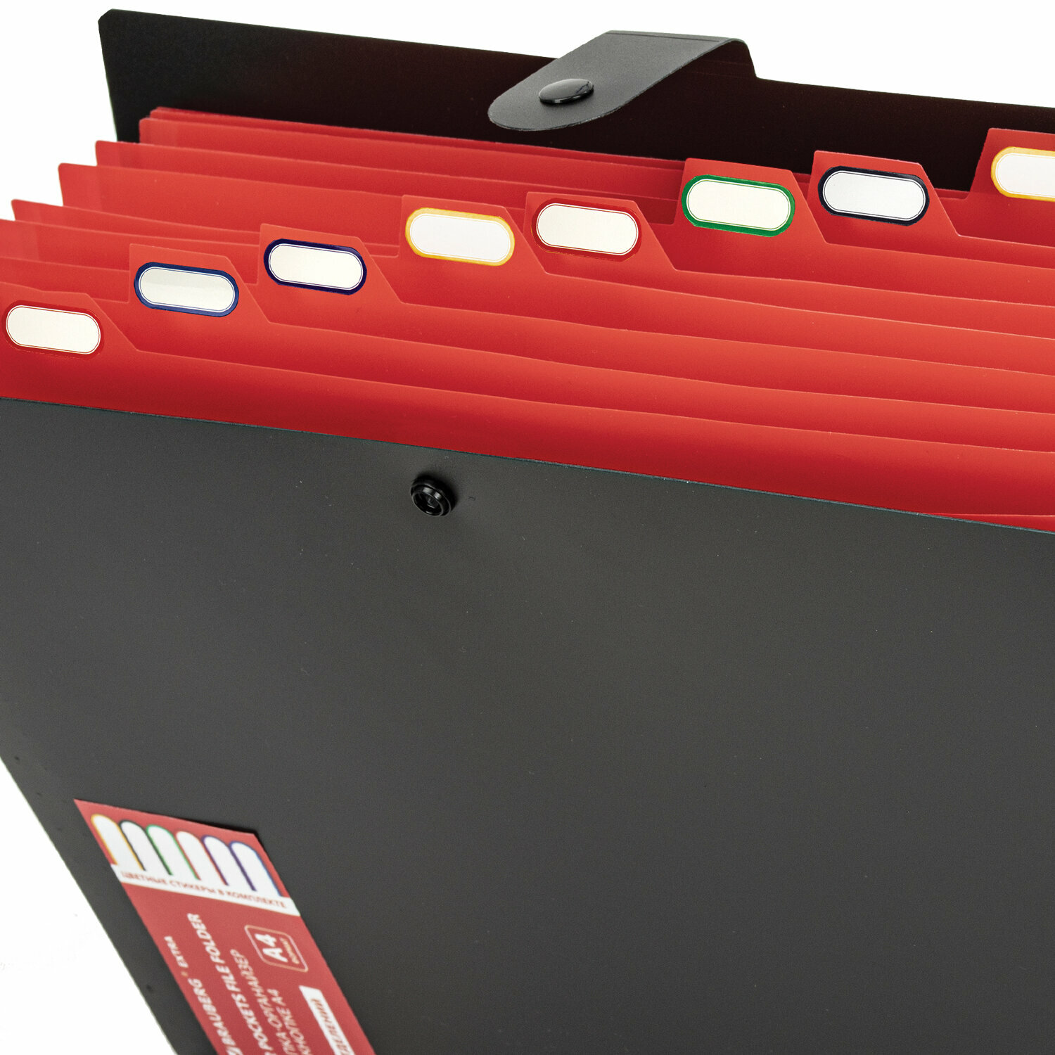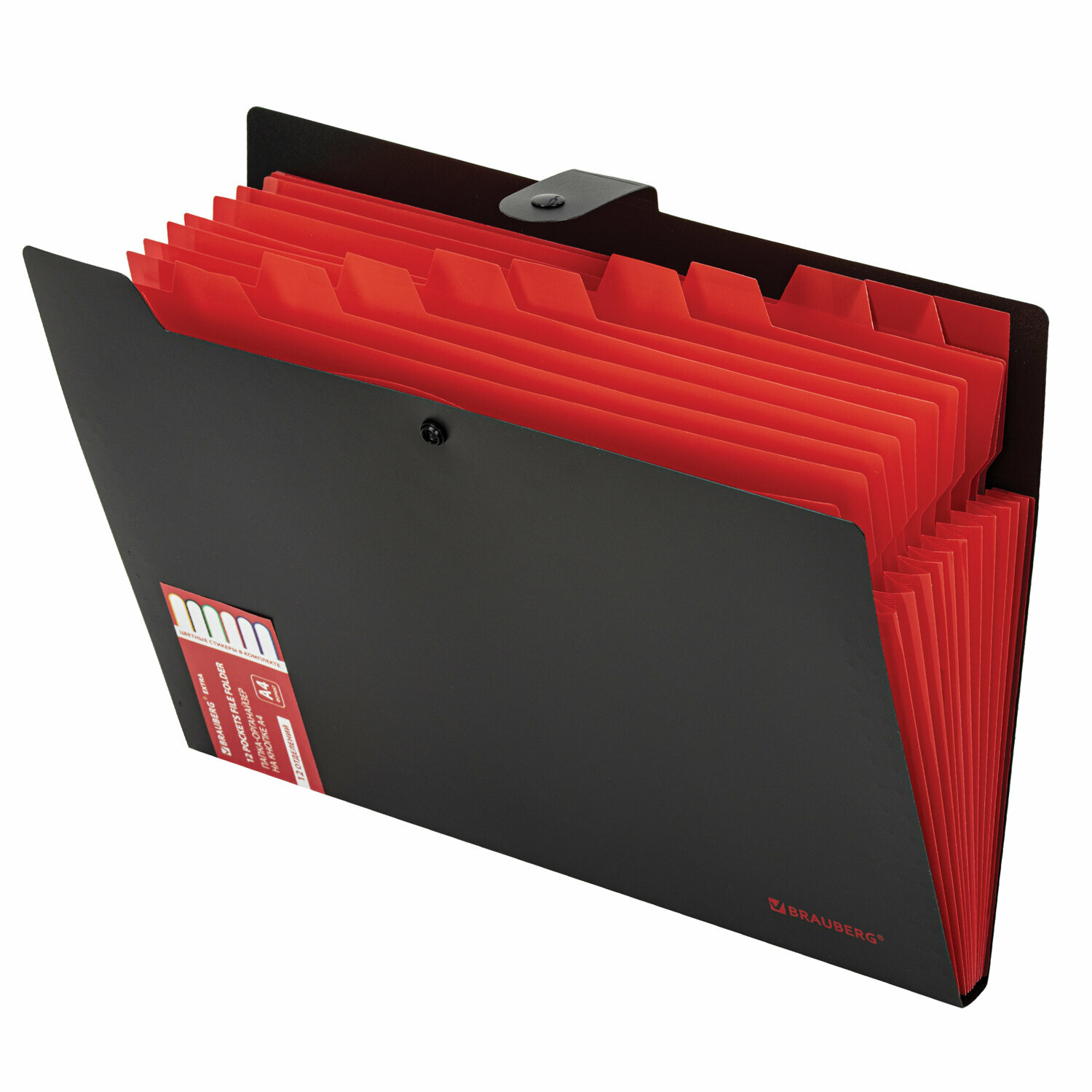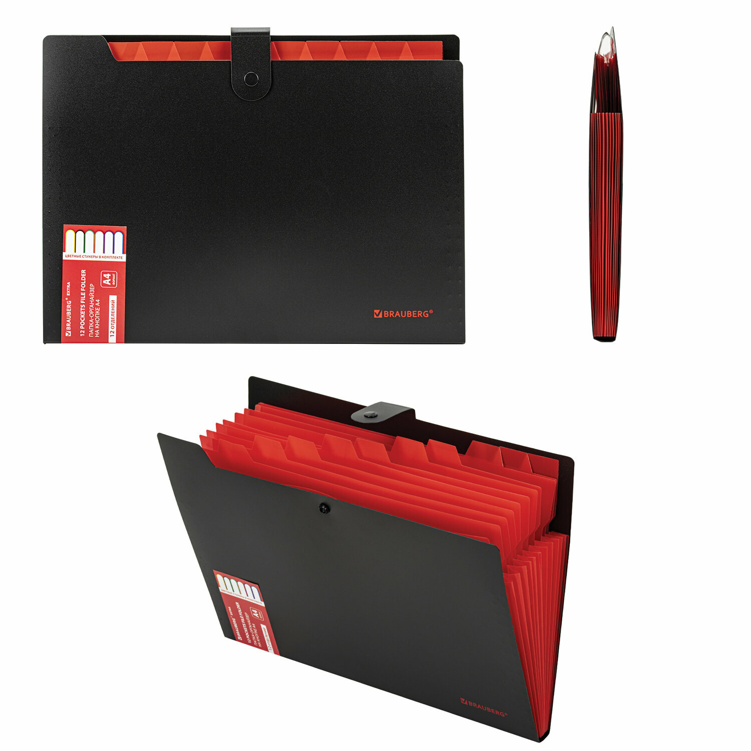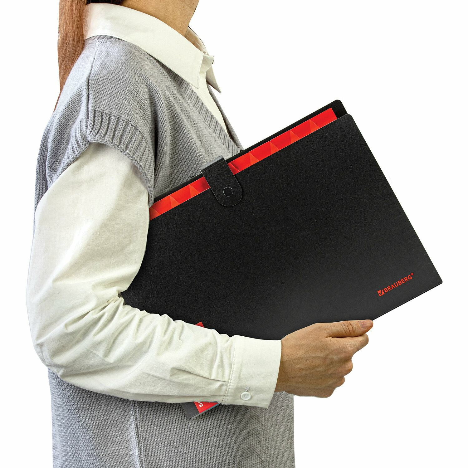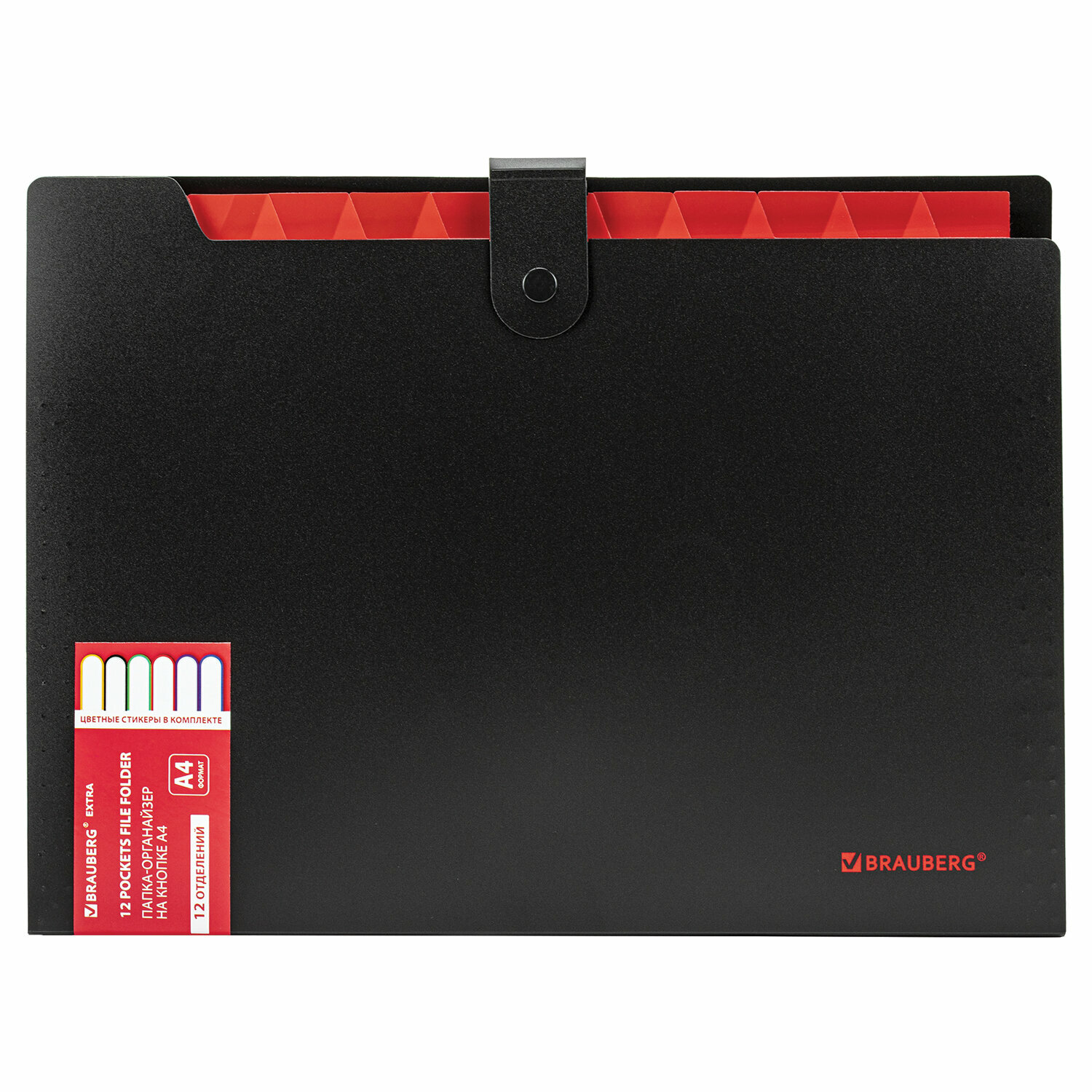Купить Папка-органайзер на кнопке 12 отделений, Brauberg Extra, А4, черная с красным, 271934