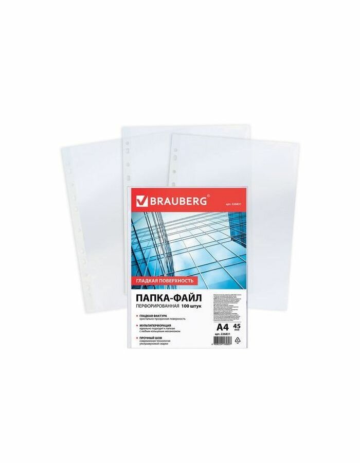 Папки-файлы перфорированные, А4, BRAUBERG, комплект 100 шт., гладкие, 45 мкм, 226831 интересное: