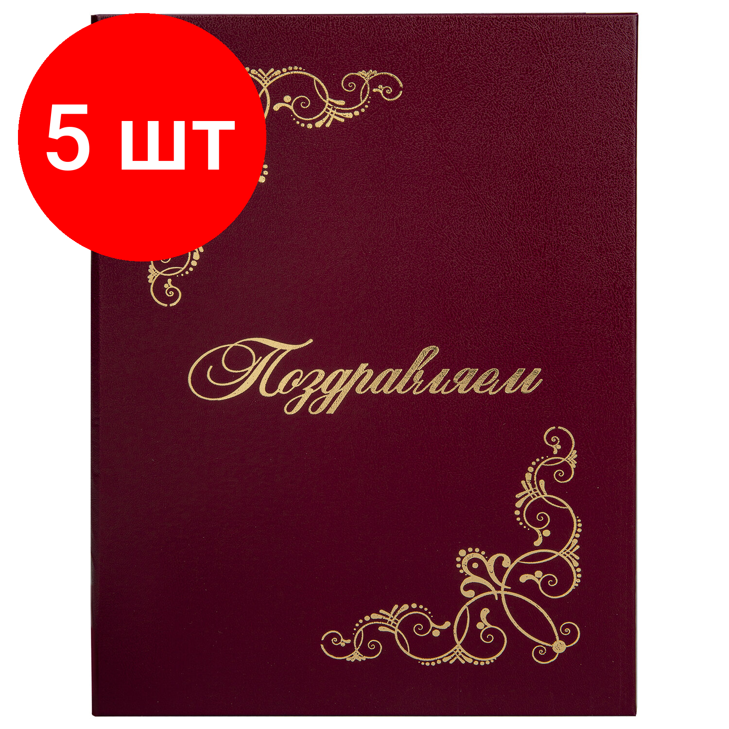 Купить Комплект 5 шт, Папка адресная бумвинил "поздравляем!" с виньетками, А4, бордовая, индивидуальная упаковка, STAFF "Basic", 129632
