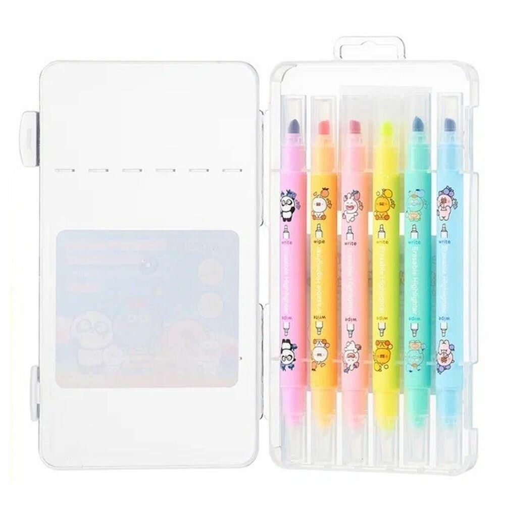 Купить Набор стираемых текстовыделителей, 6 шт, шести цветов, в кейсе, текстмаркеры детские длиной 14.5 см, фломастеры хайлайтеры MC-Basir со специальным стирателем