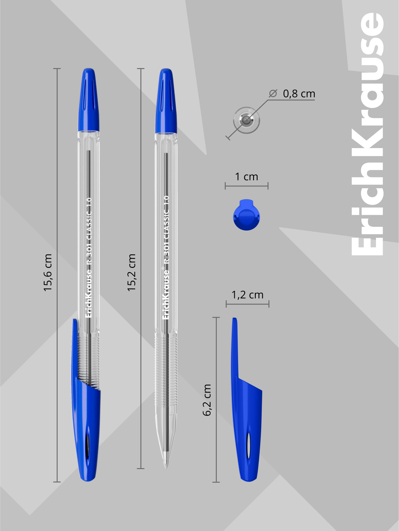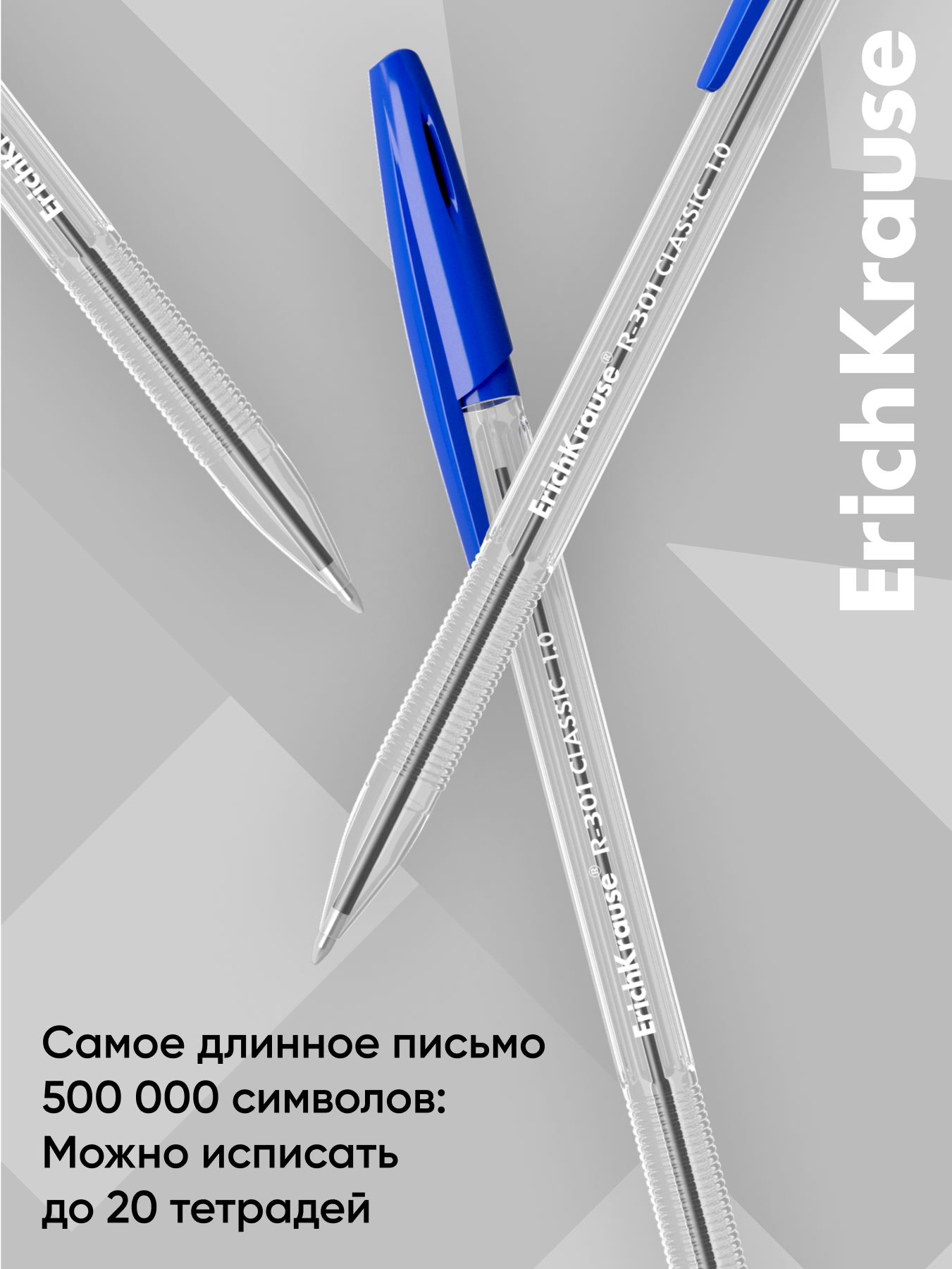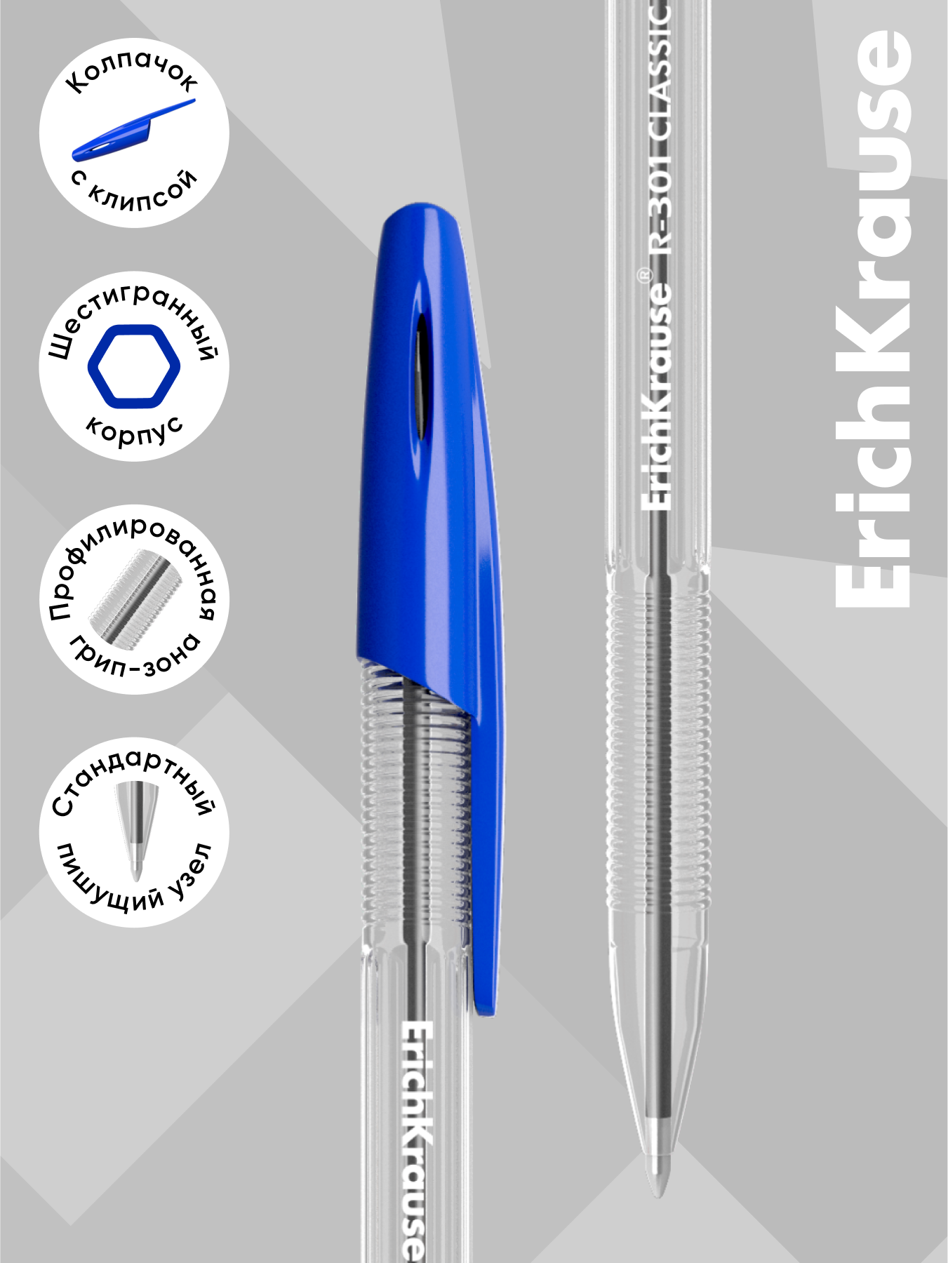 Ручка шариковая ErichKrause® R-301 Classic Stick 1.0, цвет чернил синий (в пакете по 8 шт.)