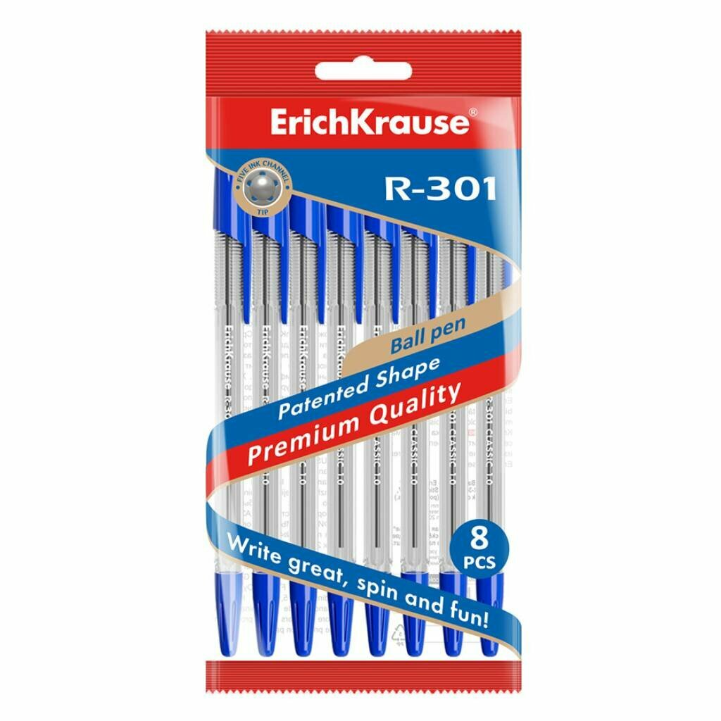 Набор из 8 ручек шариковых ErichKrause R-301 Stick Original 1.0, цвет чернил синий (в пакете)
