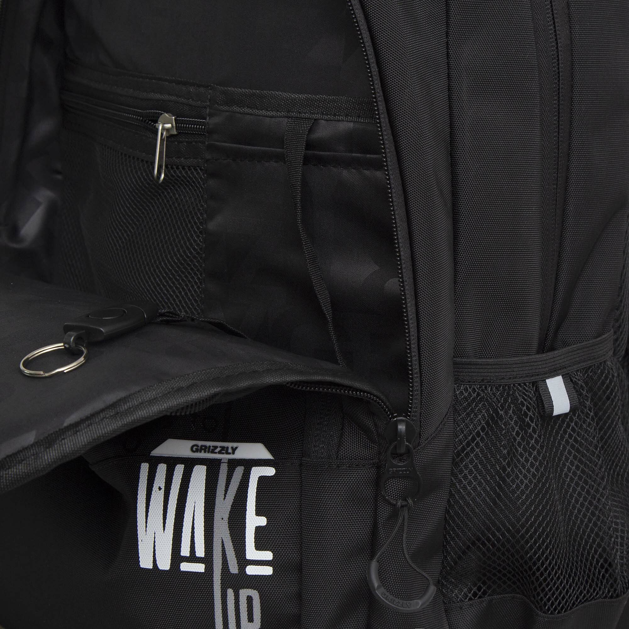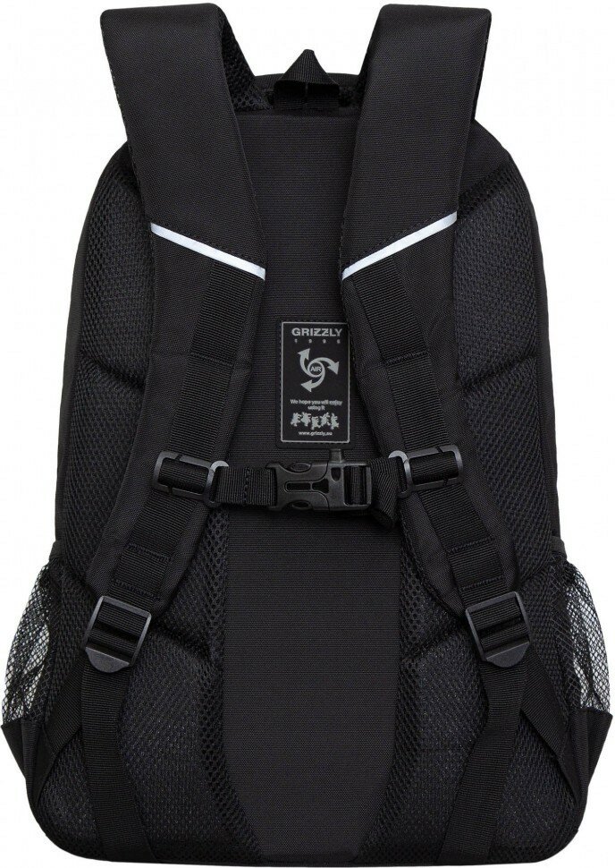 Рюкзак молодёжный 45 х 32 х 23 см, Grizzly "Спорт", эргономичная спинка, отделение для ноутбука, чёрный