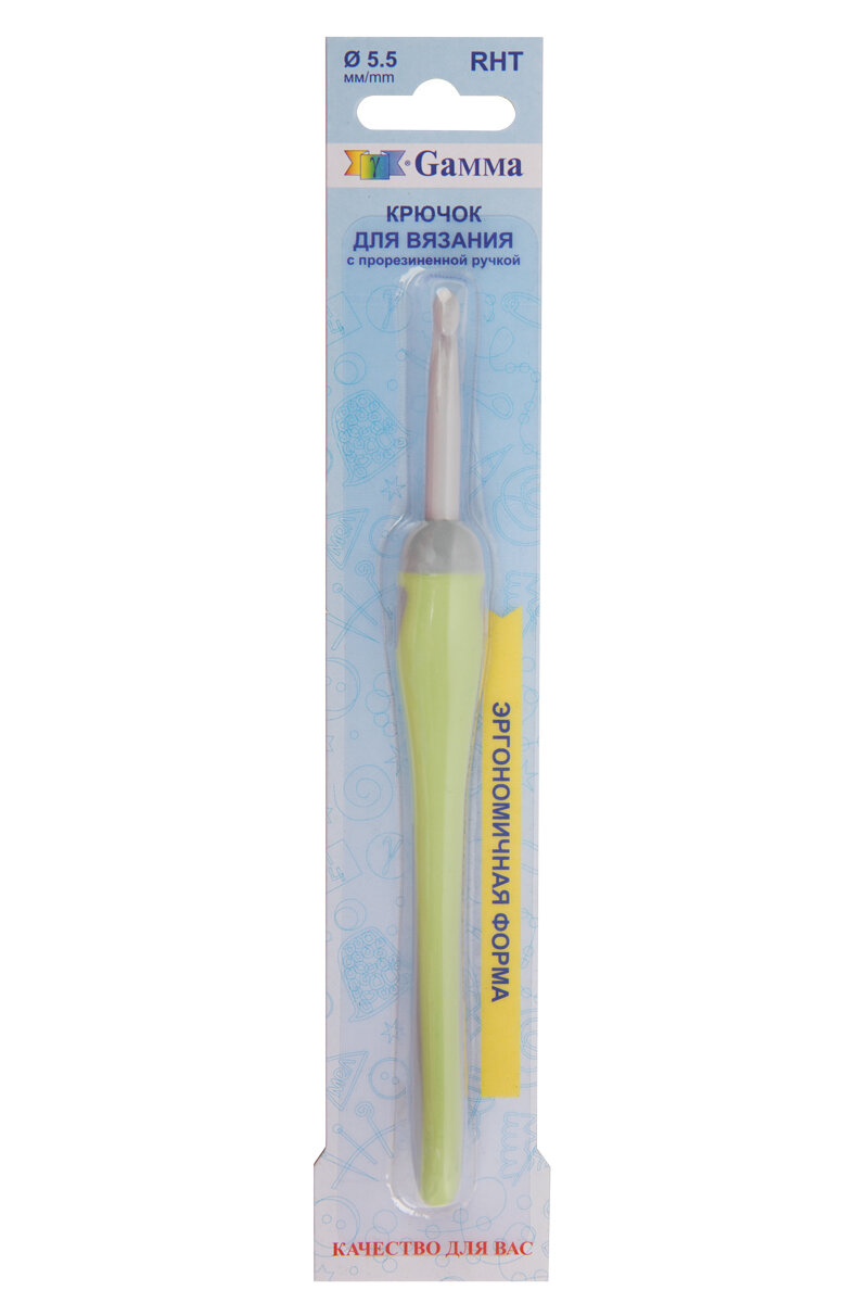 Купить Крючок для вязания "Gamma" RHT с прорезин. ручкой алюминий d 5.5 мм 14.5 см c покрытием