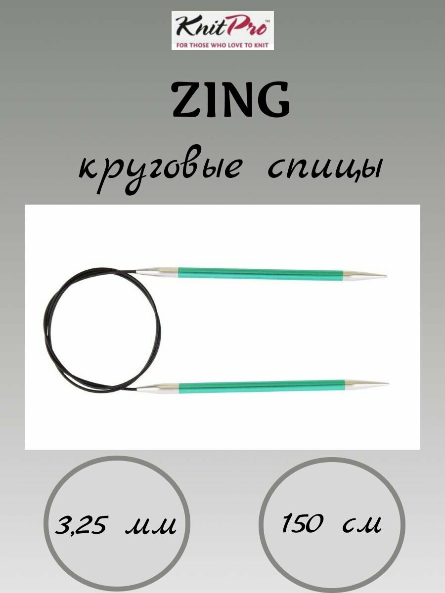 Купить Спицы круговые Knit Pro Zing, 3,25 мм, 150 см, алюминий, изумрудный (KNPR.47206)
