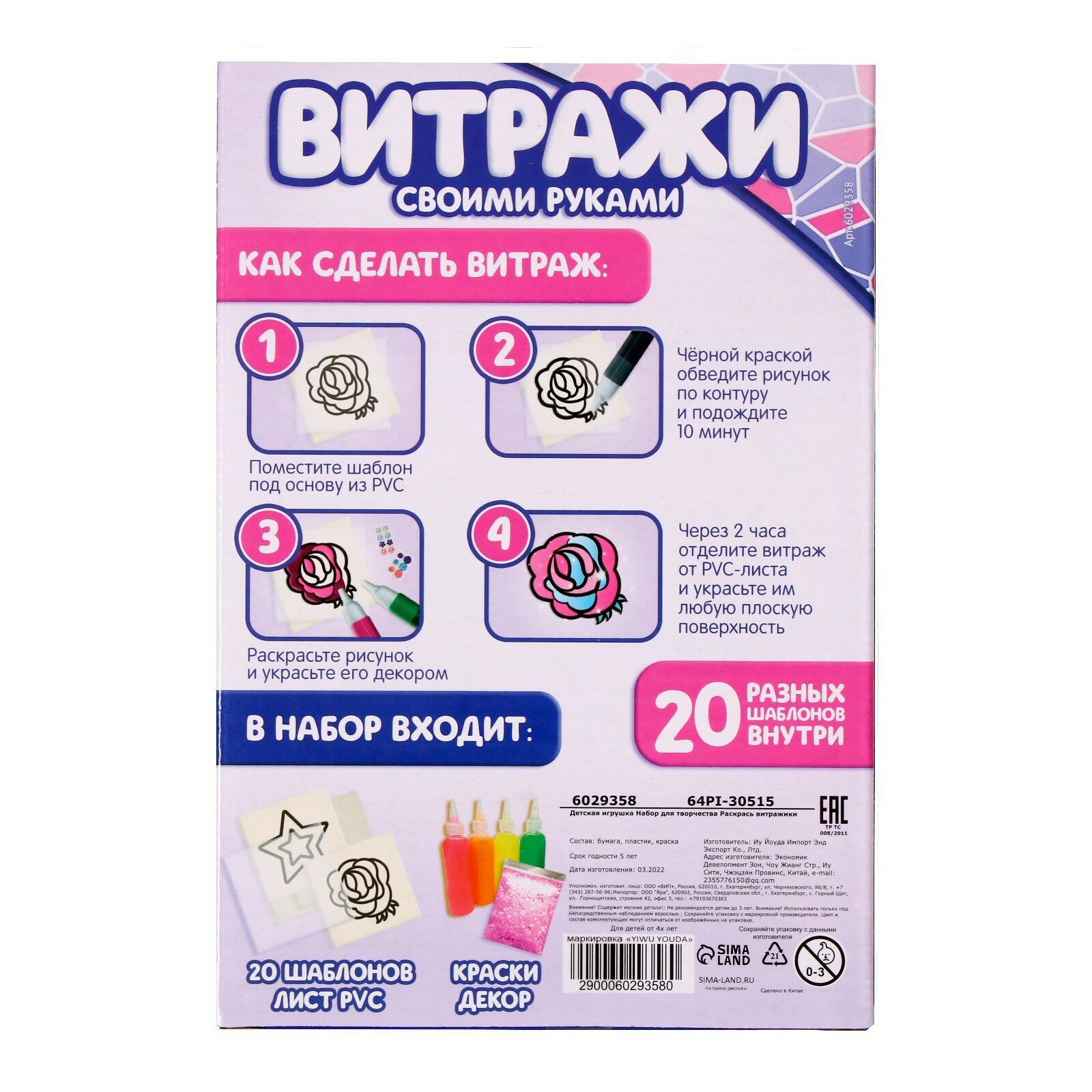 Набор для творчества "Раскрась витражики. Пони", детский комплект для создания аппликаций, 6 красок, стразы, блестки, 20 трафаретов, лист ПВС интересное: