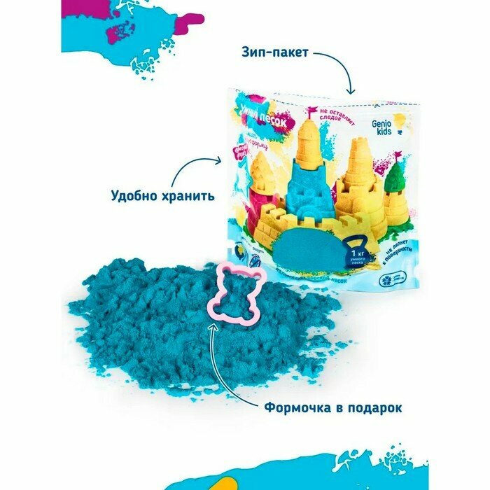 Кинетический песок Genio Kids Голубой, 1 кг, от 3 лет, в пакете (SSR074)