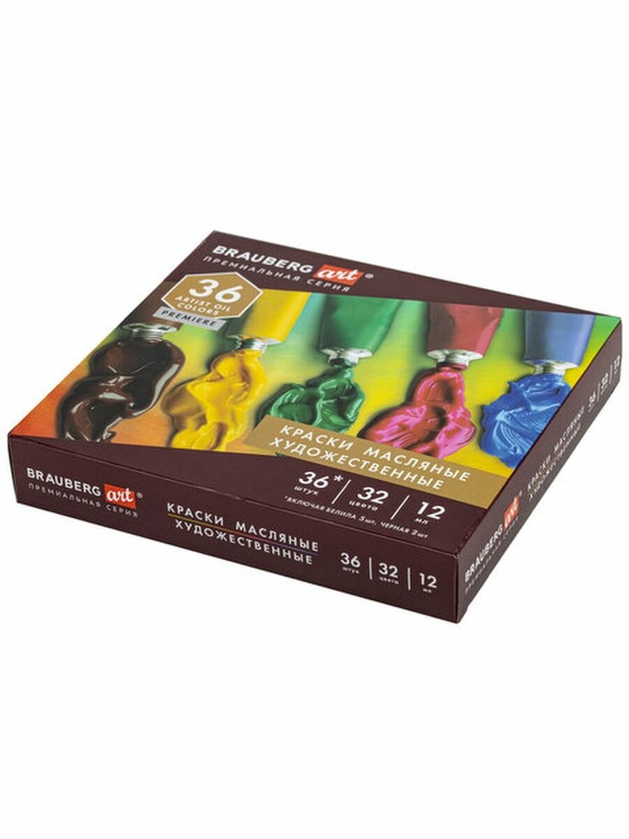 Купить Краски масляные художественные в тубах для рисования Brauberg Art Premiere, Набор 36 штук 32 цвета по 12 мл