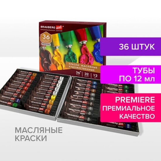 Краски масляные художественные набор «PREMIERE 36 штук 32 цвета! », в тубах 12 мл, BRAUBERG ART
