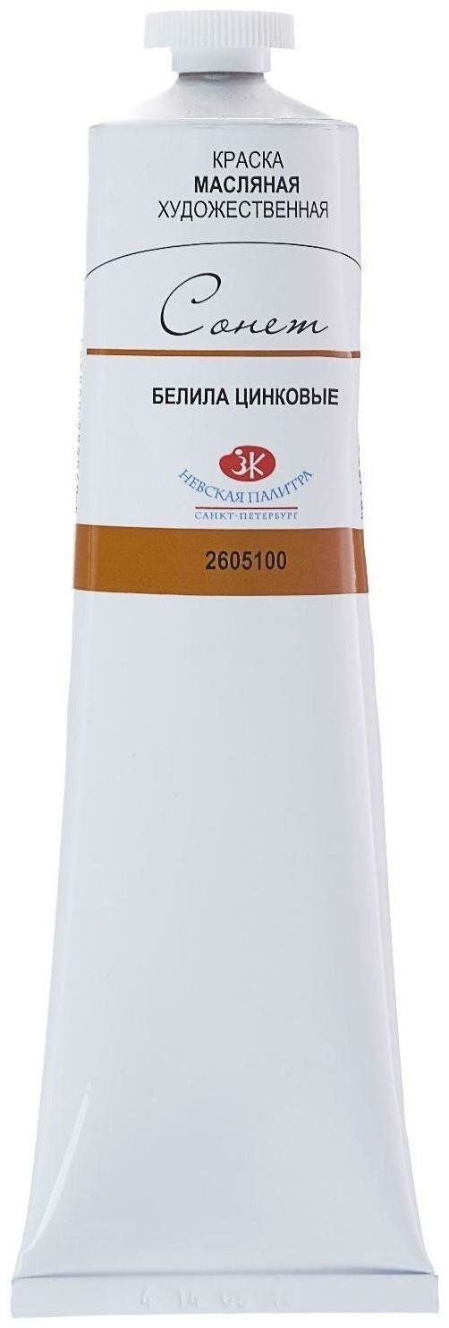 Завод художественных красок «Невская палитра» Краска масляная в тубе 120 мл, ЗХК "Сонет", белила цинковые, 2605100