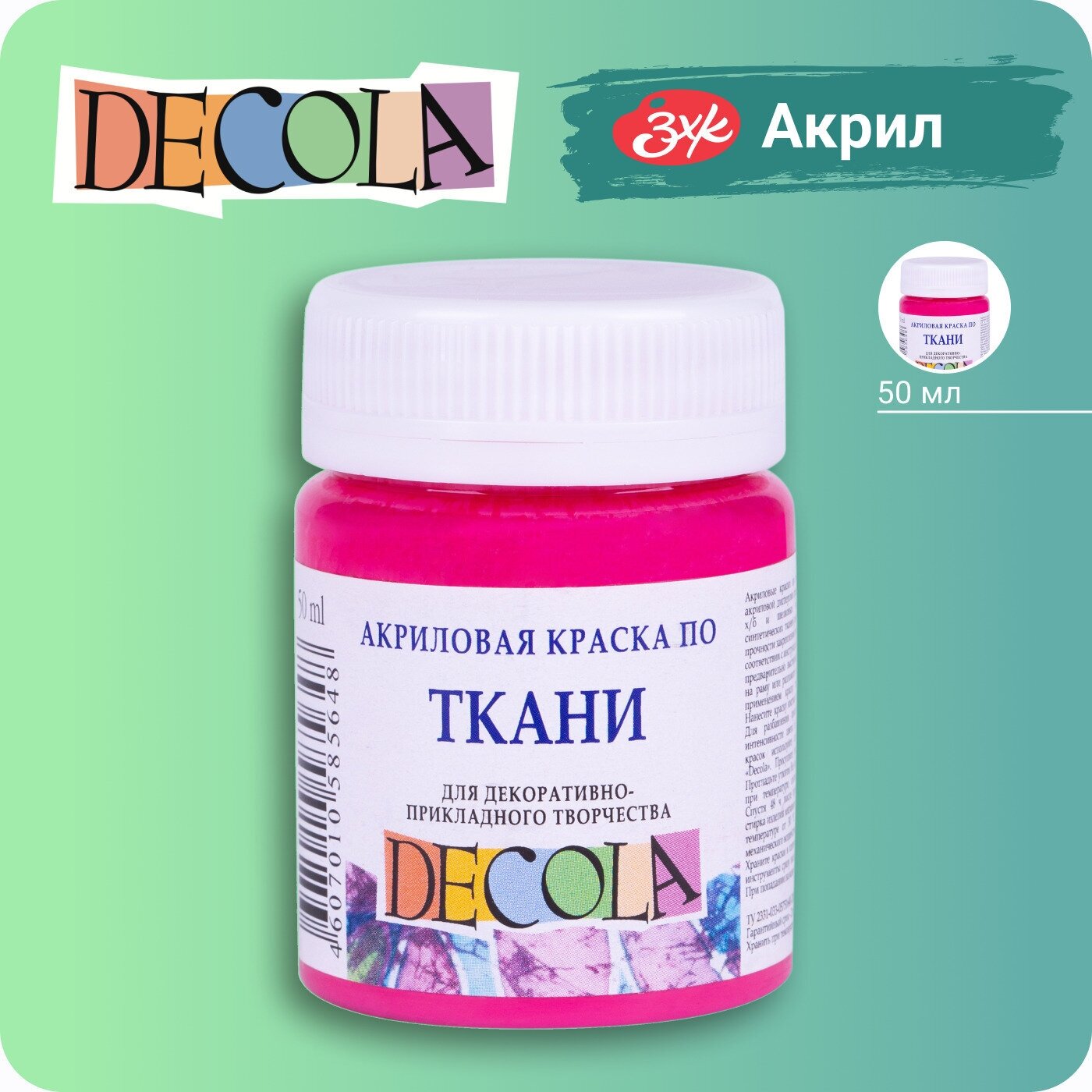 Завод художественных красок «Невская палитра» Краска по ткани, банка 50 мл, ЗХК Decola, Розовая светлая 4128335, (акриловая на водной основе) интересное: