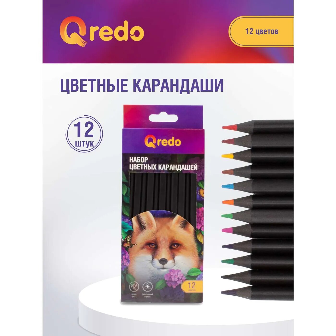 Карандаши цветные пластиковые QREDO "FOX", 12 цветов, гриф.d=3мм, трехгранные интересное: