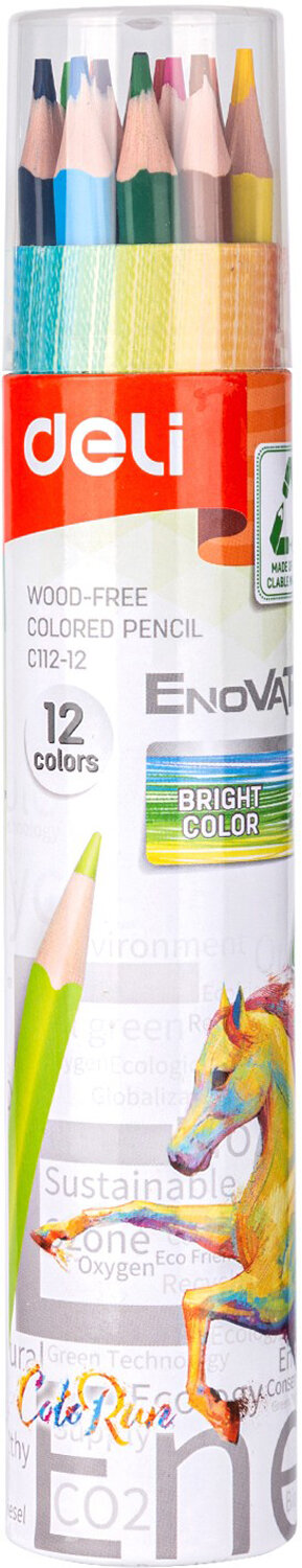 Купить Карандаш Deli Карандаши цв. Enovation трехгран. пластик 12цв. карт.тубус (12шт) EC112-12