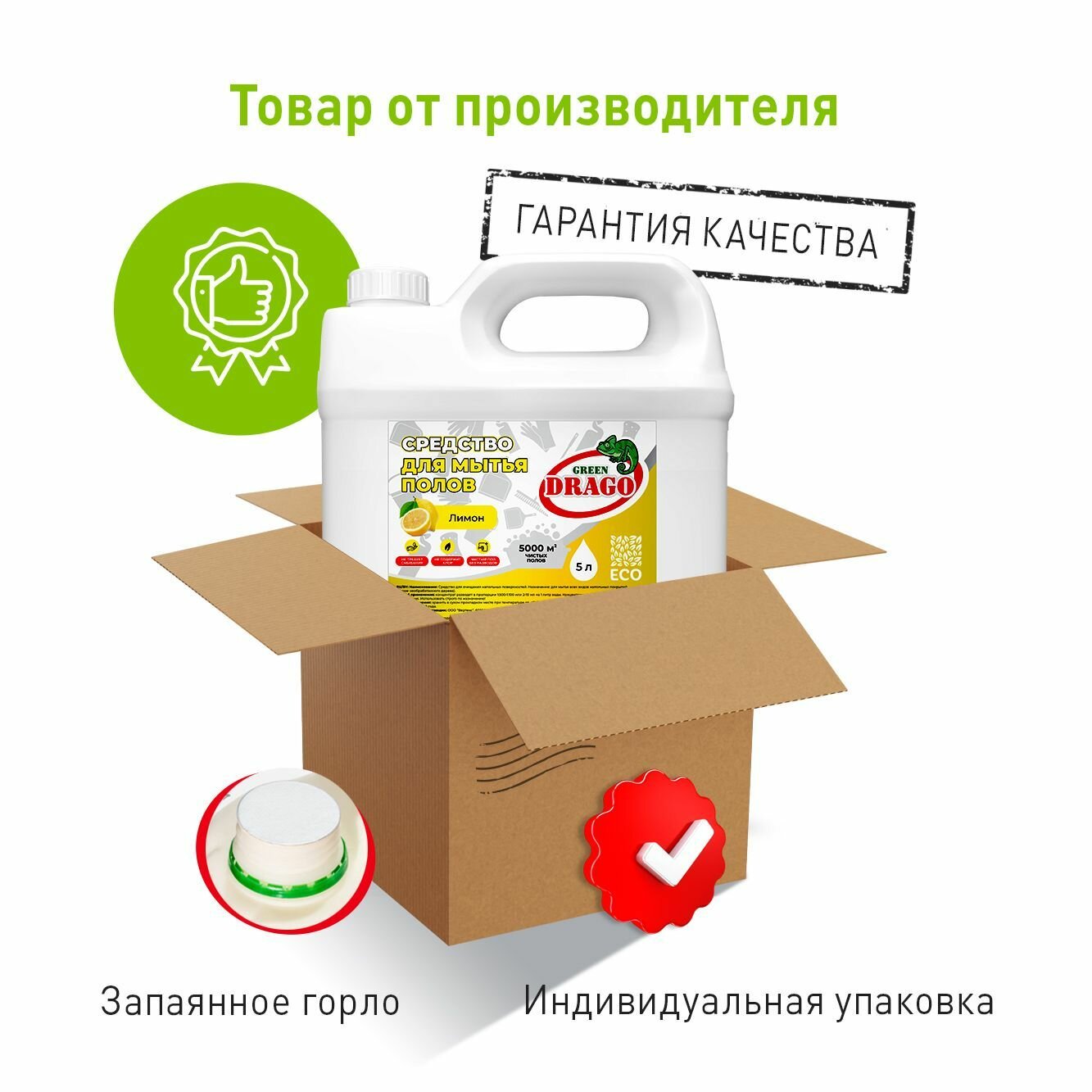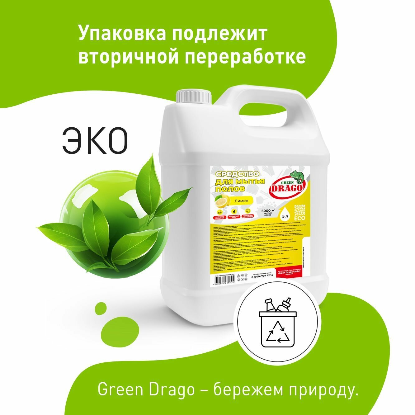 Green Drago Средство для мытья полов с ароматом «Лимон", 5 л GD90050001