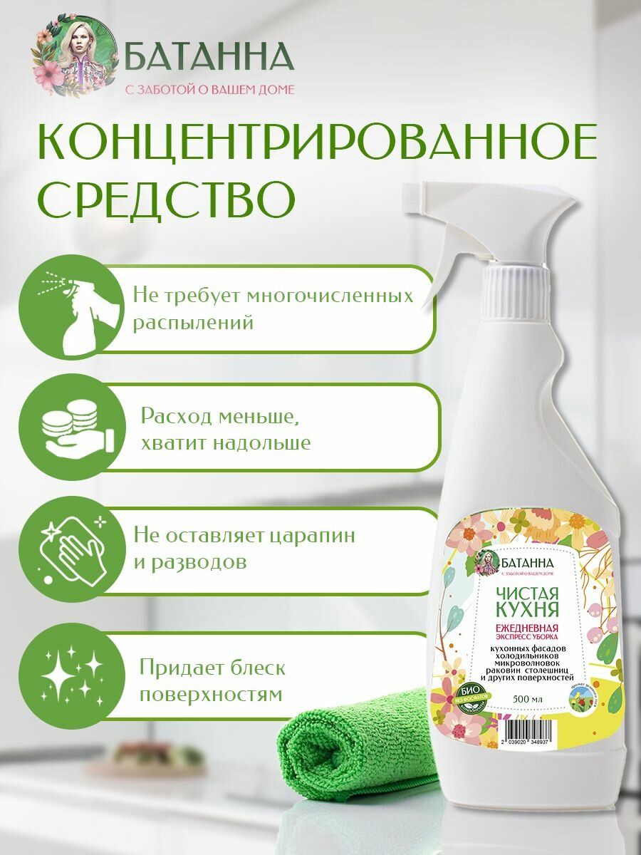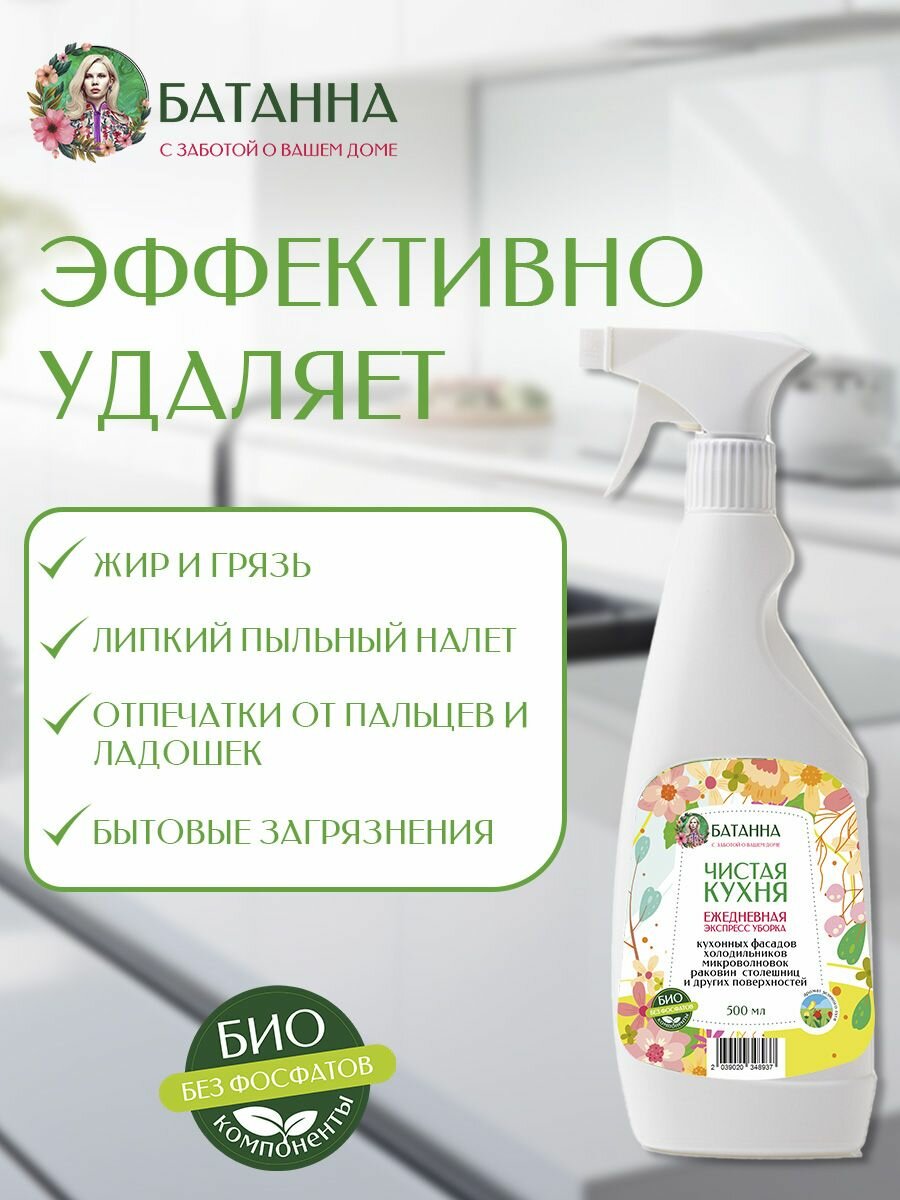 Чистящее средство для кухни, антижир, для холодильника от запаха, средство для стеклокерамики плиты, для индукционной плиты, для матовых и глянцевых фасадов, спрей для уборки 500 мл BATANNA интересное: