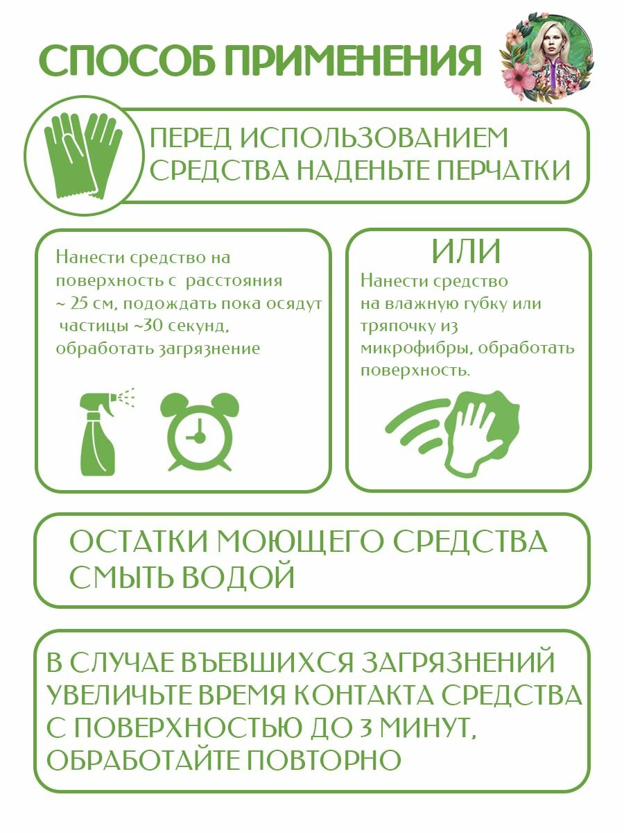 | Эффект | антибактериальный / антистатический / обезжиривание / придание блеска / устранение неприятных запахов |
