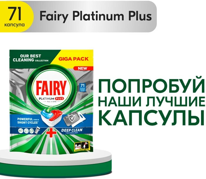СохранитьКапсулы для Посудомоечной Машины Fairy Platinum Plus Все-В-Одном, Свежесть трав, бесфосфатные таблетки для мытья посуды, 71 шт. интересное: