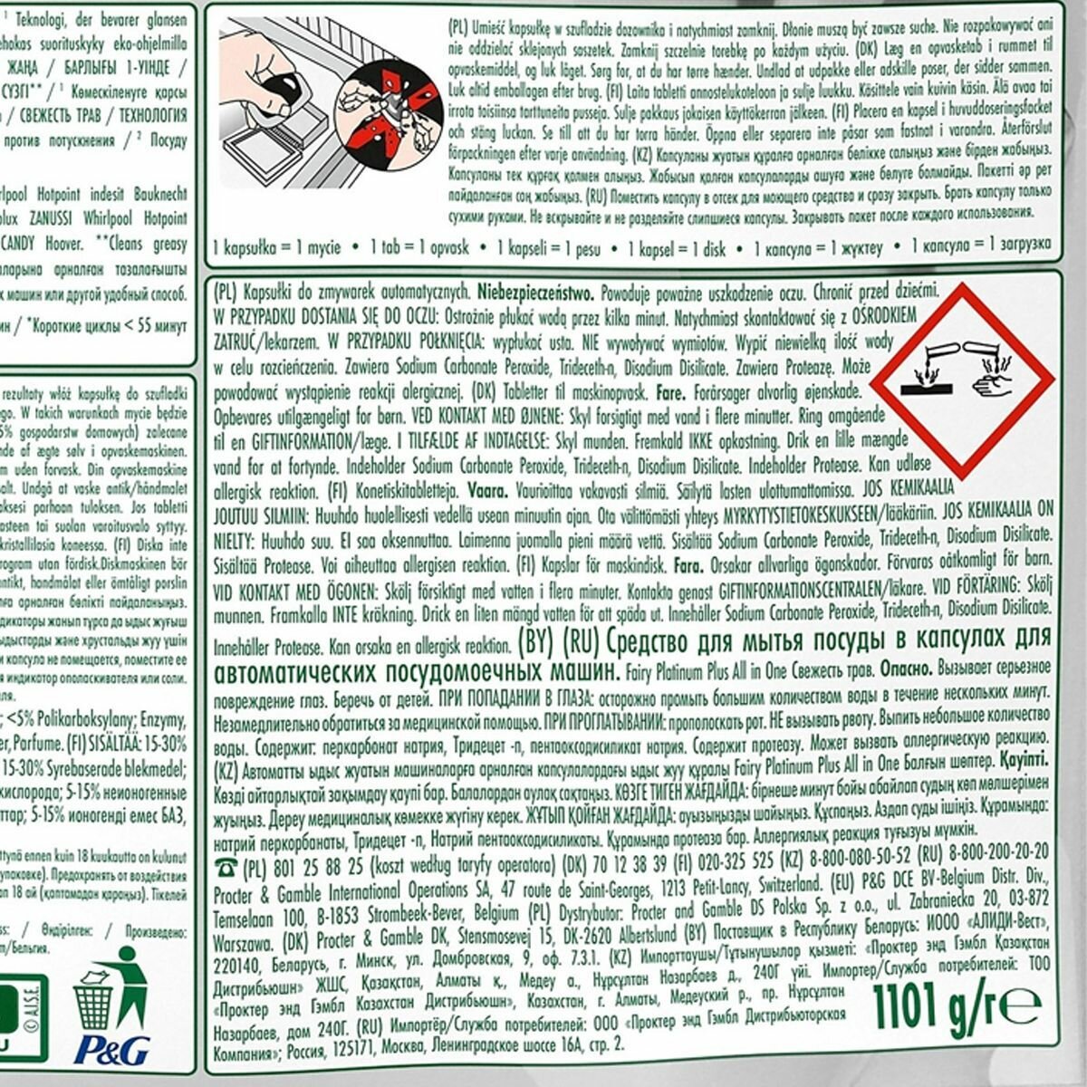 Капсулы таблетки для Посудомоечной Машины Fairy Platinum Plus All in One, Свежесть трав, бесфосфатные таблетки для мытья посуды, 71 шт.