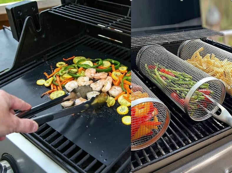 Купить Набор для гриля и барбекю: Антипригарный Коврик и Корзина из нержавеющей стали