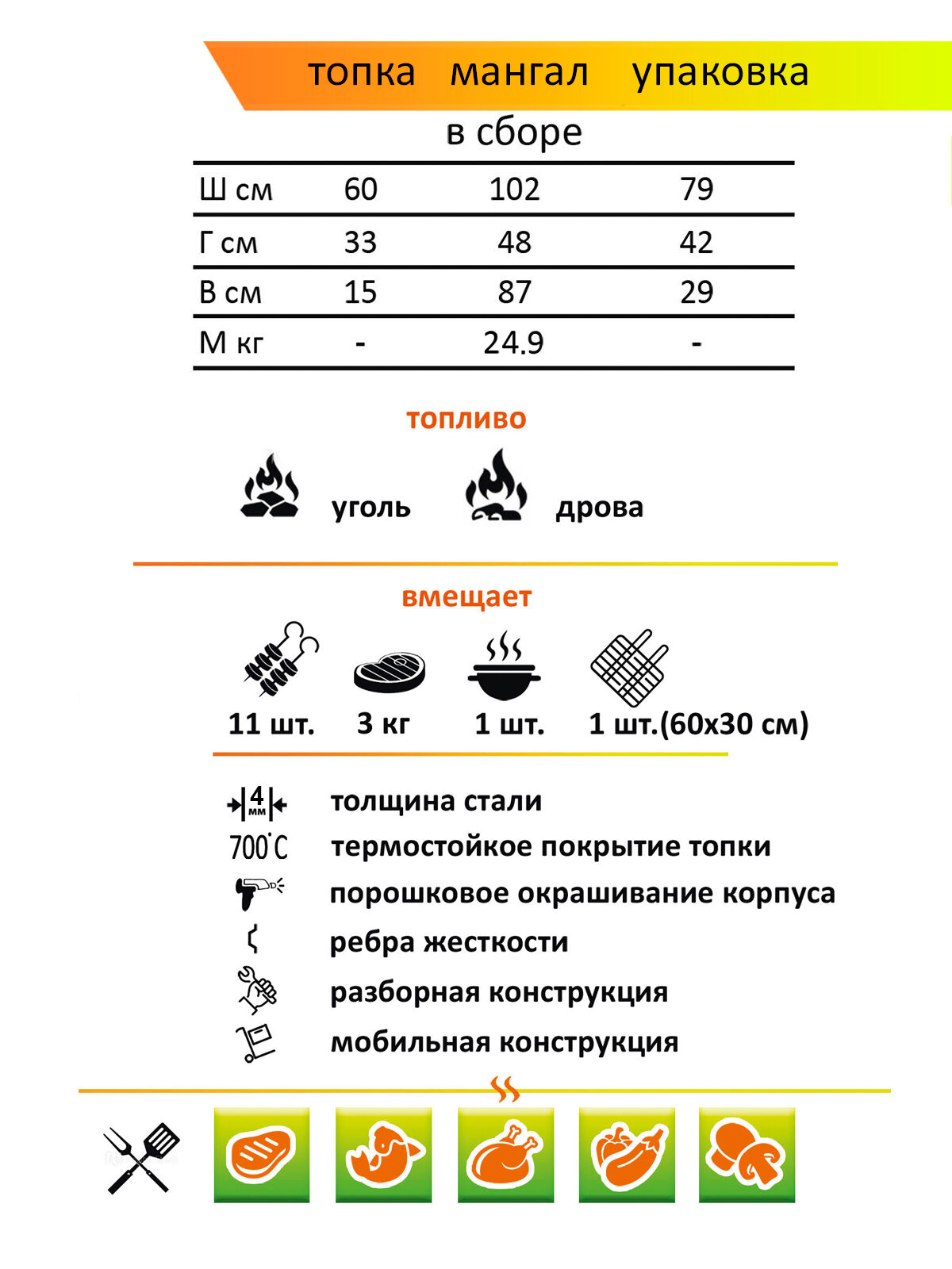 | Тип мангала | передвижной |