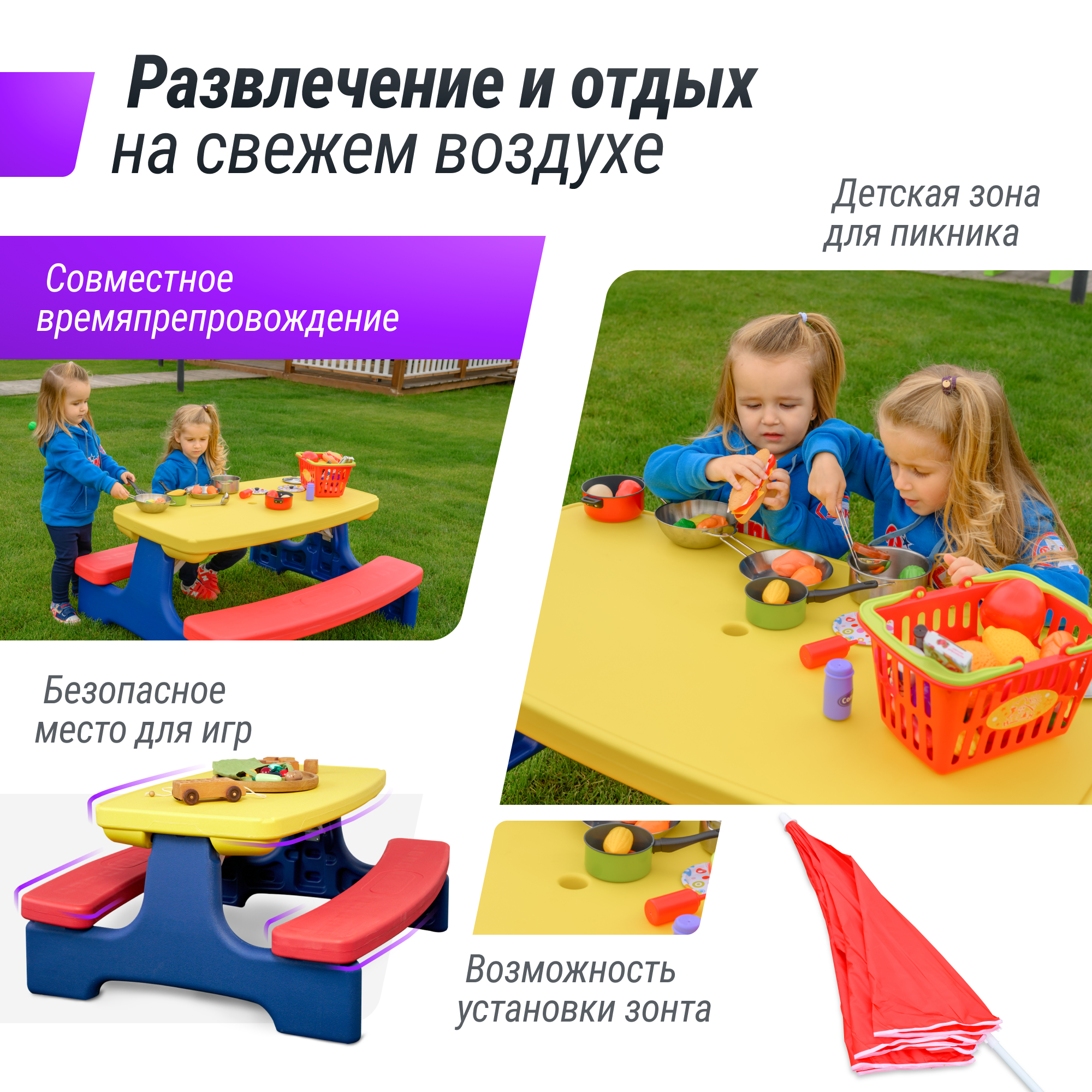 Стол детский с лавочками и зонтом UNIX Kids Garden комплект детской мебели пластиковый для дачи и улицы со столиком