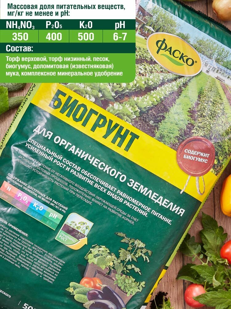 | Состав | Биогрунт Фаско для рассады и органического земледелия, 10 л, 3 кг |