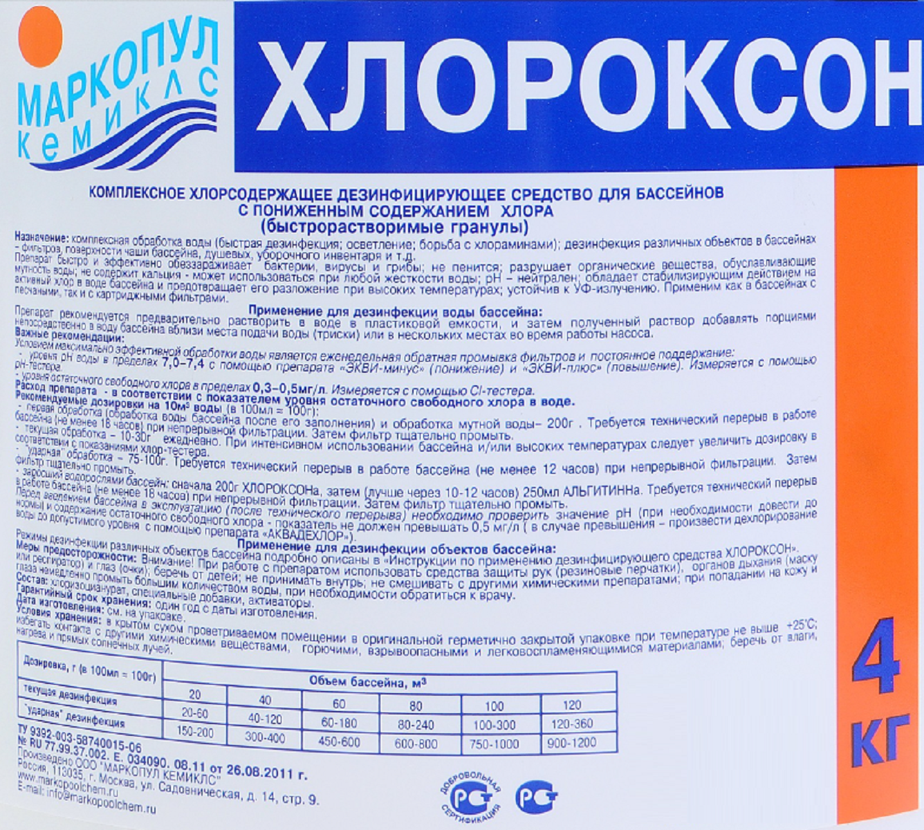 СохранитьХлороксон гранулы (4 кг). Комплексное средство для бассейна против цветения воды. Маркопул Кемиклс. интересное: