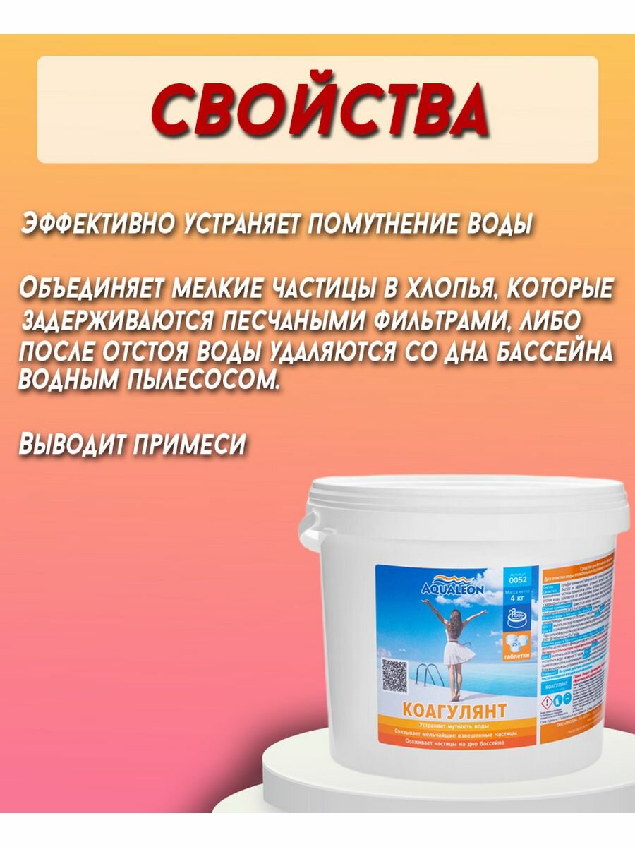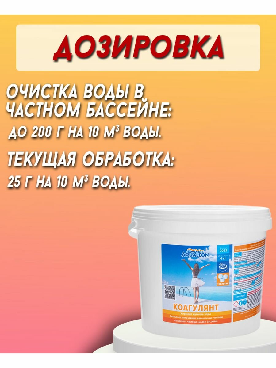 СохранитьКоагулянт таблетированный Aqualeon, средство против мутности воды, 4 кг интересное: