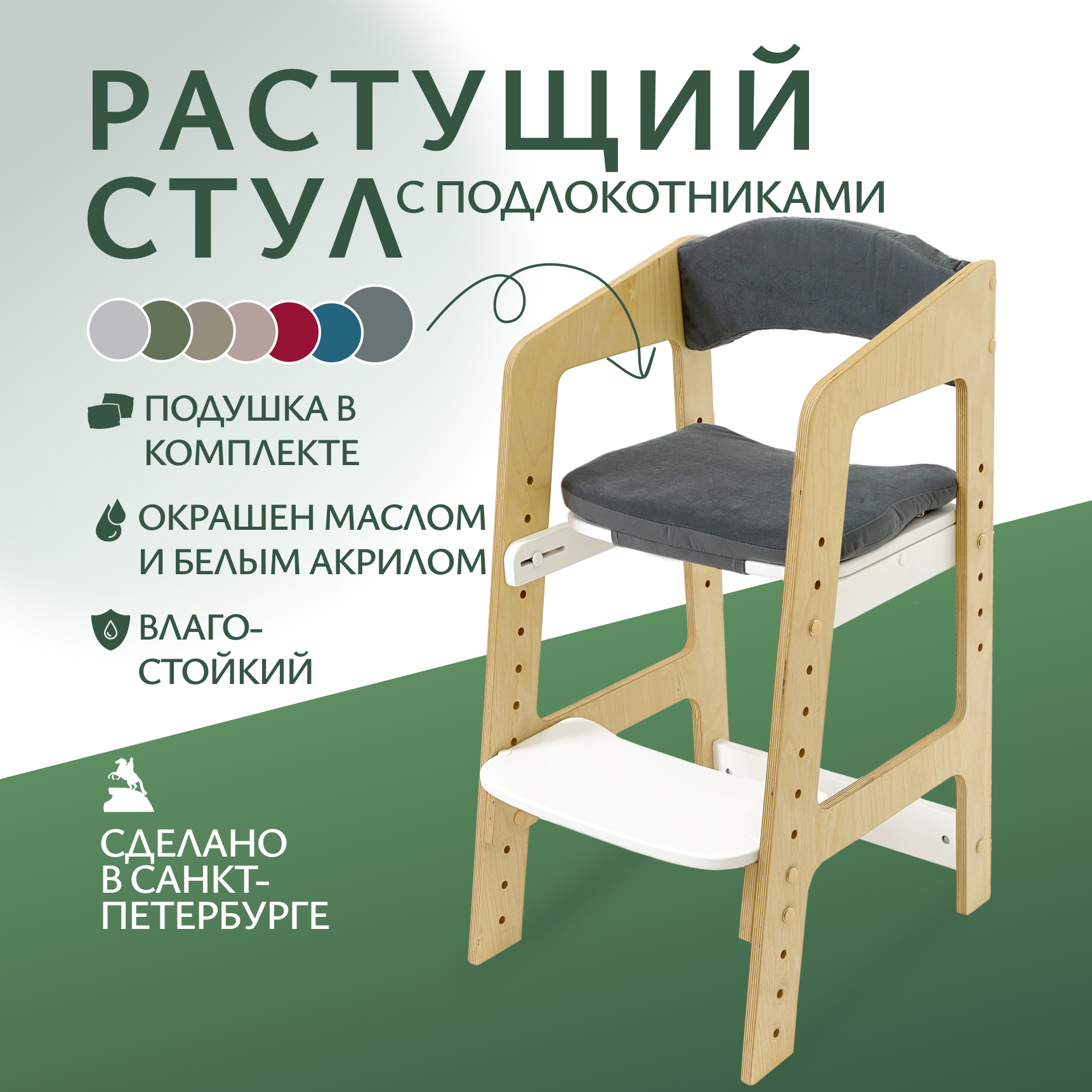 Растущий стульчик для детей Непоседа. Прозрачное масло. Темно-серые подушки.