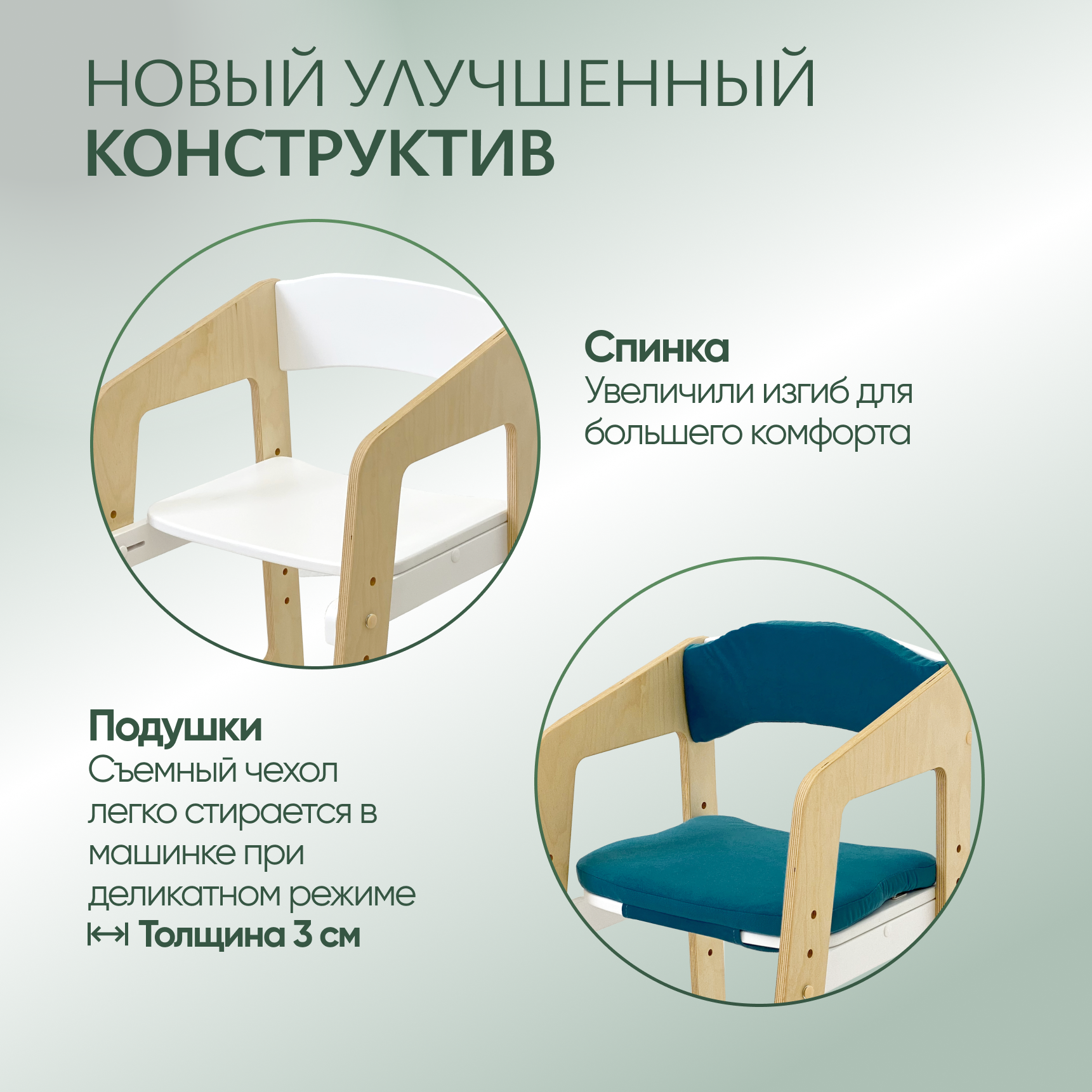 Растущий стульчик для детей Непоседа. Белый. Подушки хаки.