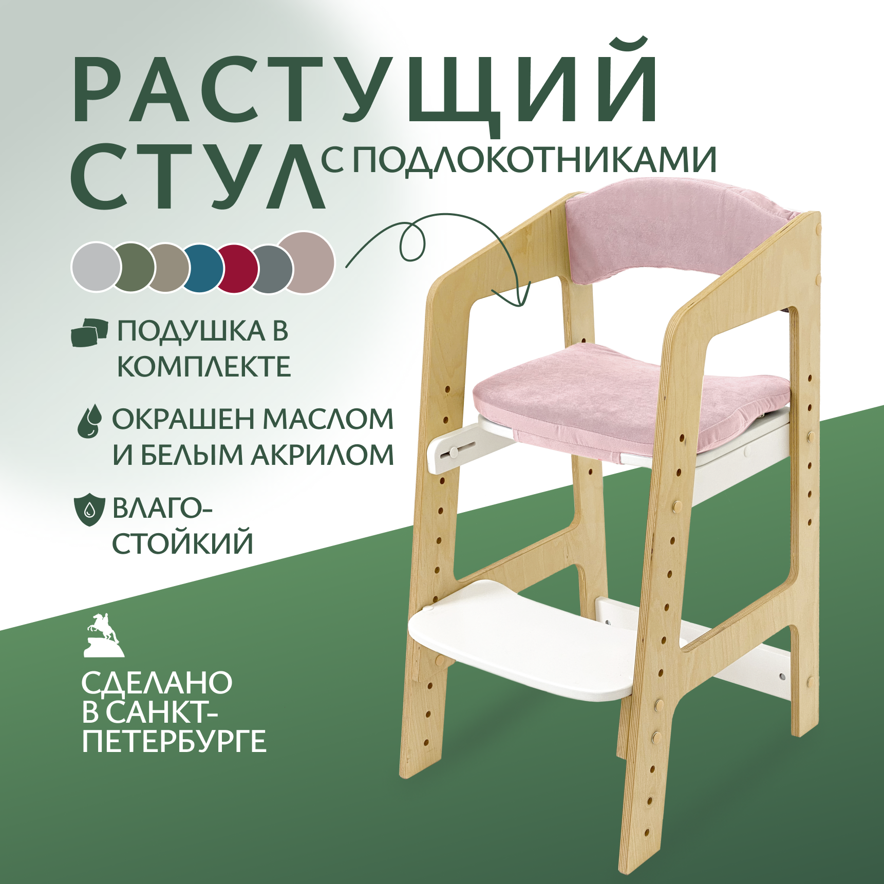 Растущий стульчик для детей Непоседа. Без покрытия. Светло-розовые подушки.