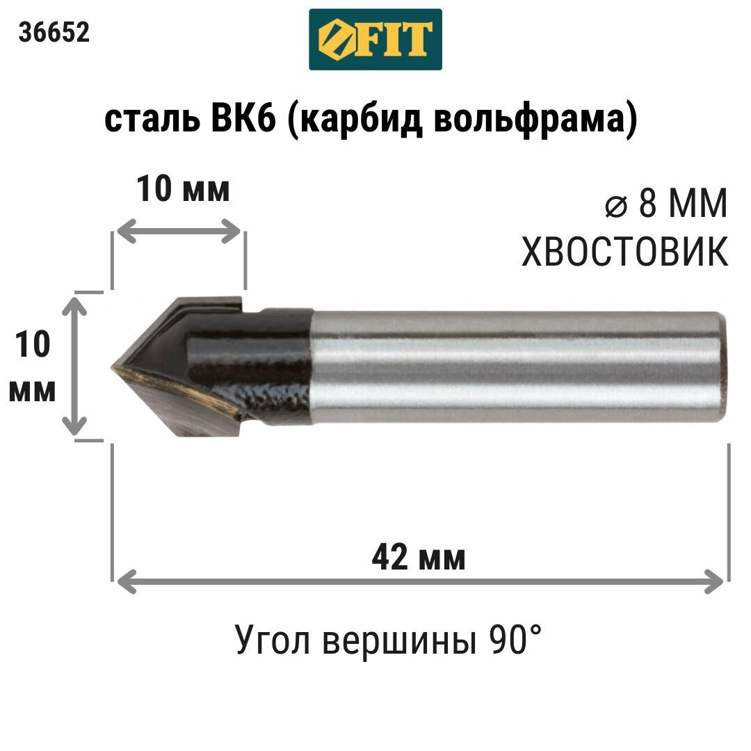Купить Фреза FIT 36652 пазовая V-образная, DxHxL = 10 х 10 х 42 мм