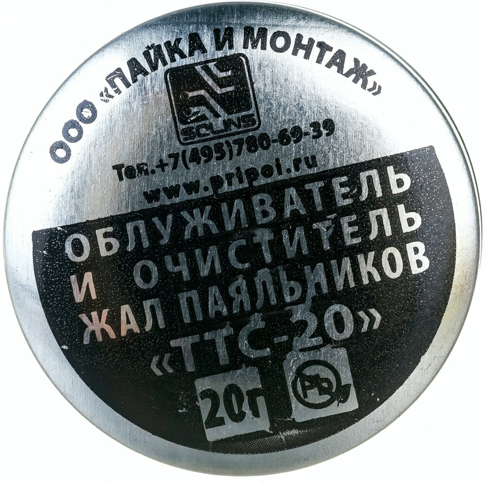 Очиститель паяльных жал Solins ТТС-20, серебристый, 20г, диаметр 30мм