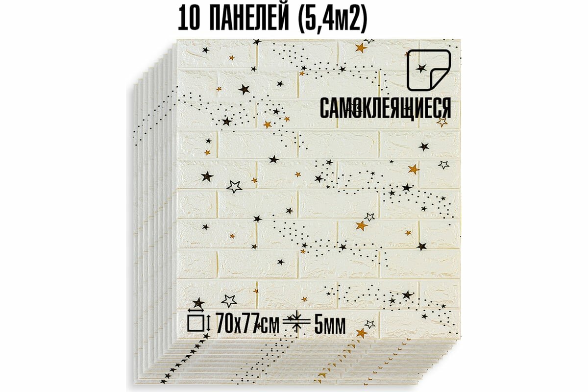 Купить Мега Комплект 10 шт 3D панелей для стен LAKO DECOR, Звезное небо Белый, 70x77см, толщина 6мм