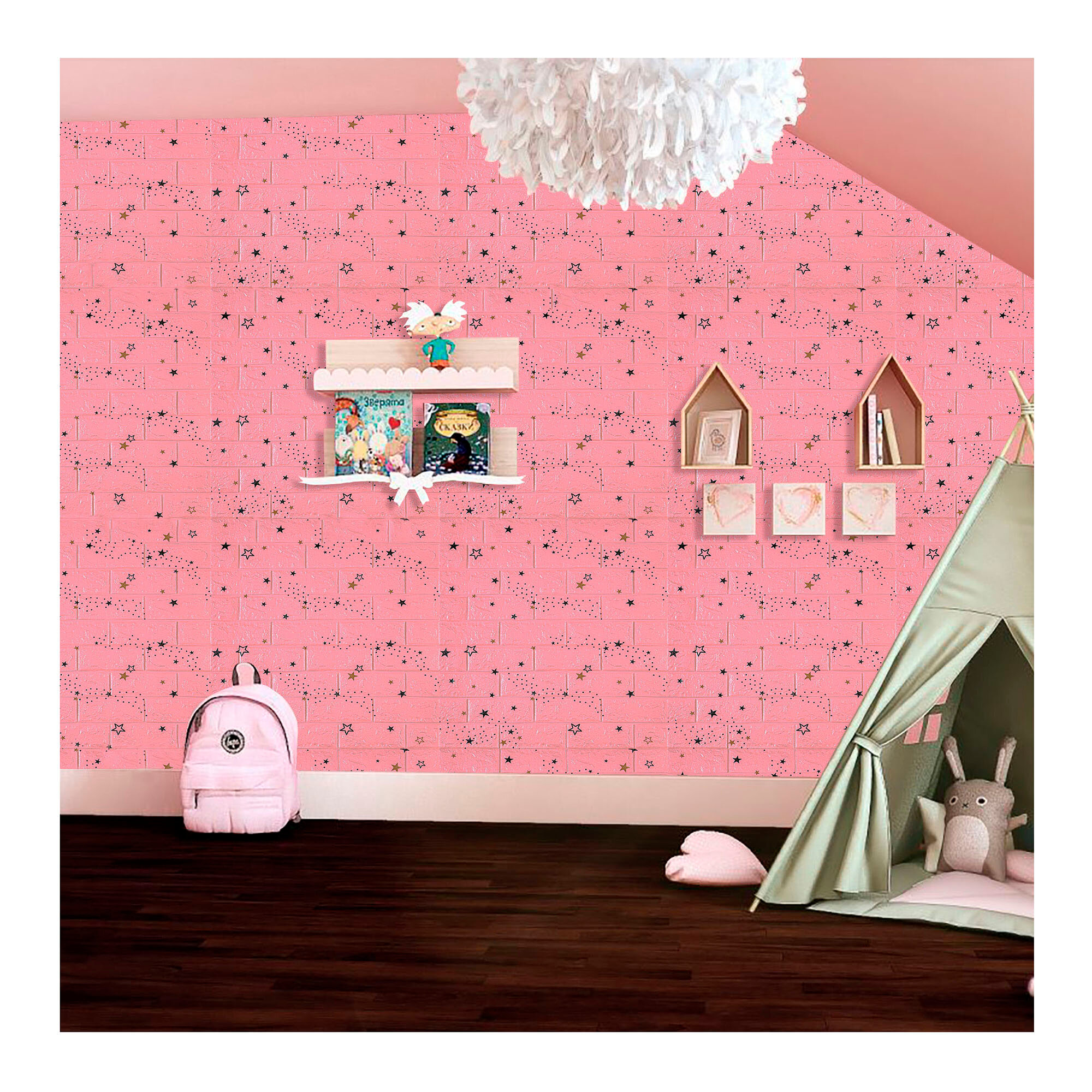 Мега Комплект 20 шт 3D панелей для стен LAKO DECOR, Звезное небо Розовый, 70x77см, толщина 6мм