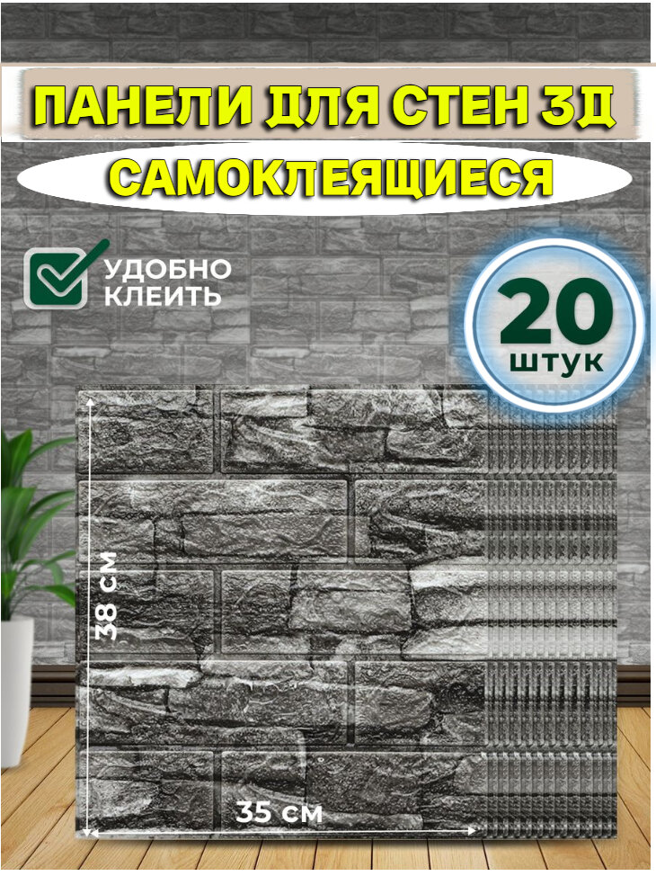 Купить Самоклеящиеся панели 3D "Серый кирпич" 35см*38 см 20 штук/Блоки ПВХ для ремонта стен/Плитка для декора и интерьера