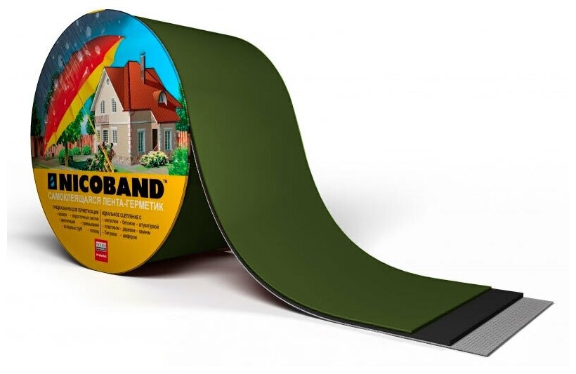 СохранитьБитумная-кровельная лента-герметик NICOBAND 10 м х 10 см Зеленый арт. 343825 интересное: