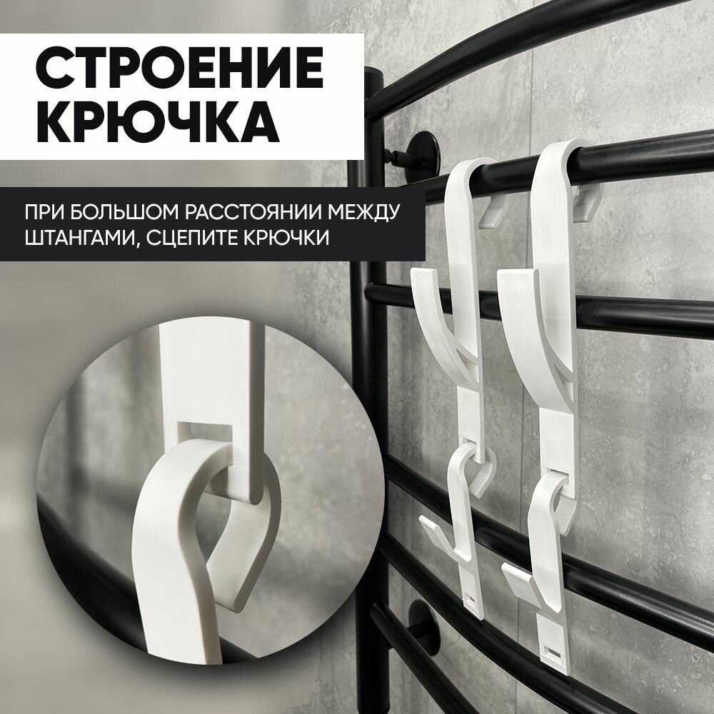 СохранитьКрючки для ванной 2 шт. белые большие для труб диаметром до 3,5 см на полотенцесушитель (для полотенец) пластиковый интересное: