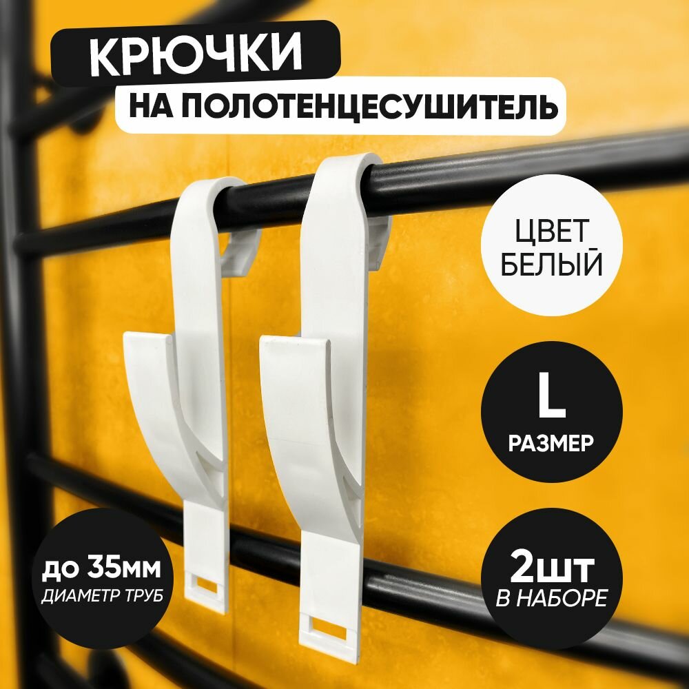 Купить Крючки для ванной 2 шт. белые большие для труб диаметром до 3,5 см на полотенцесушитель (для полотенец) пластиковый