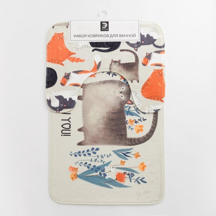 СохранитьНабор ковриков для ванной Этель "Котики" 2 шт, 80х50 см, 50х40 см, велюр интересное:
