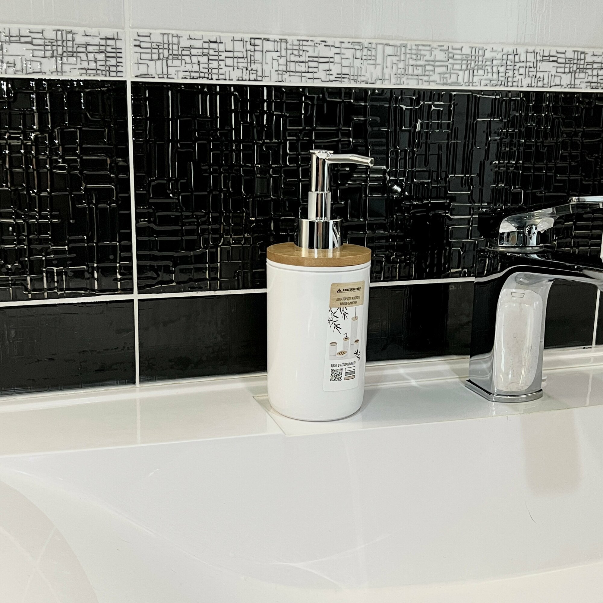 Дозатор для жидкого мыла, моющего средства, диспенсор для мыла на кухню и ванную Альтернатива Бамбук, белый