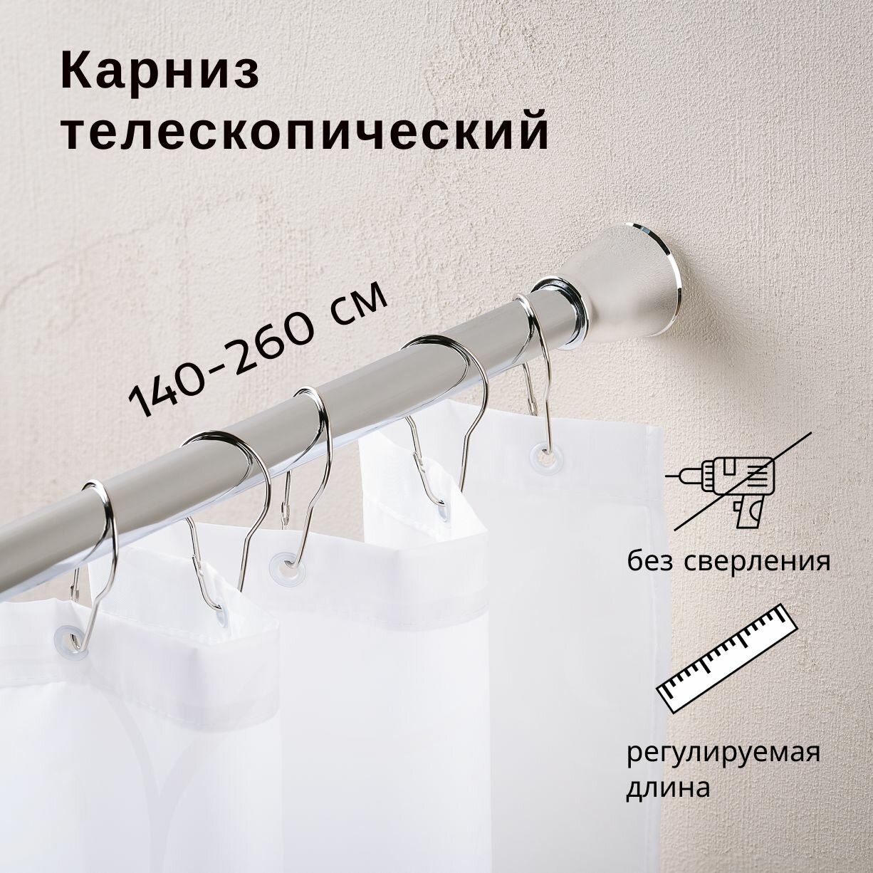 Карниз для ванной 140-260 см телескопический прямой сталь хром