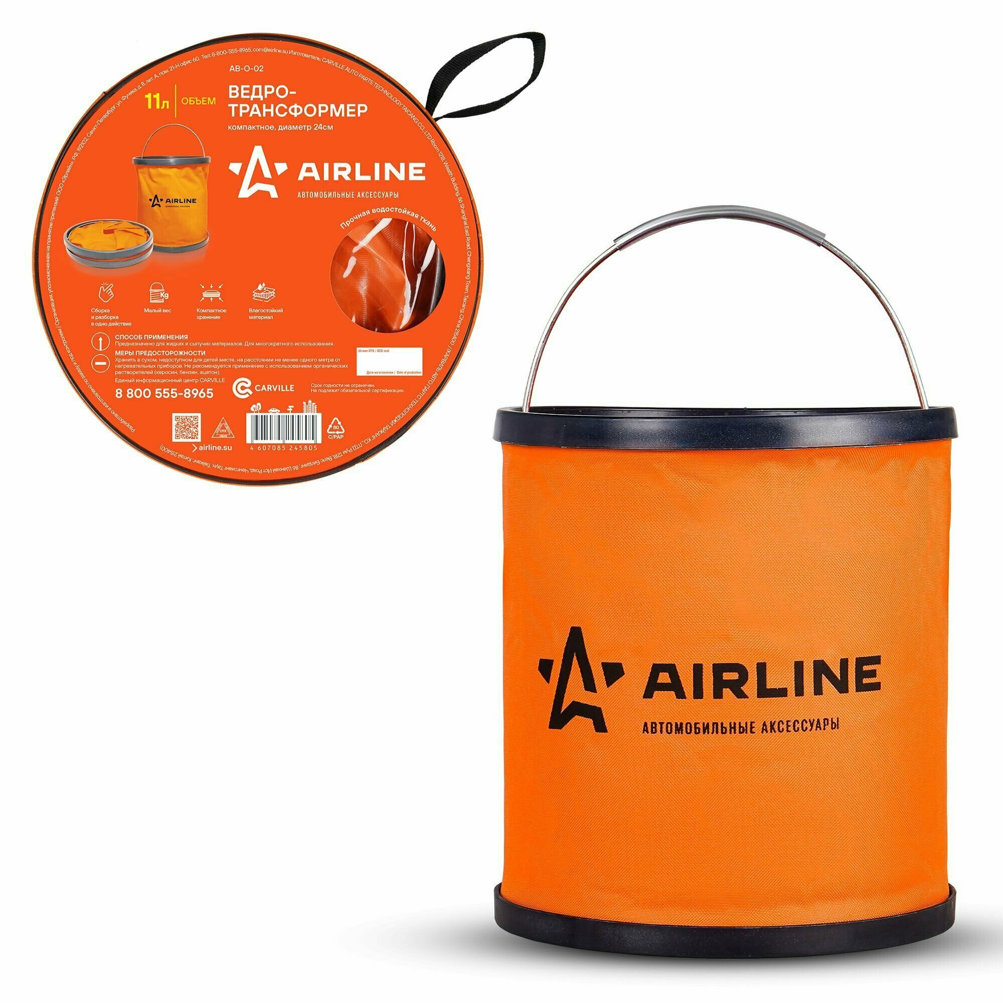 Ведро-трансформер компактное оранжевое 11л AB-O-02 AIRLINE