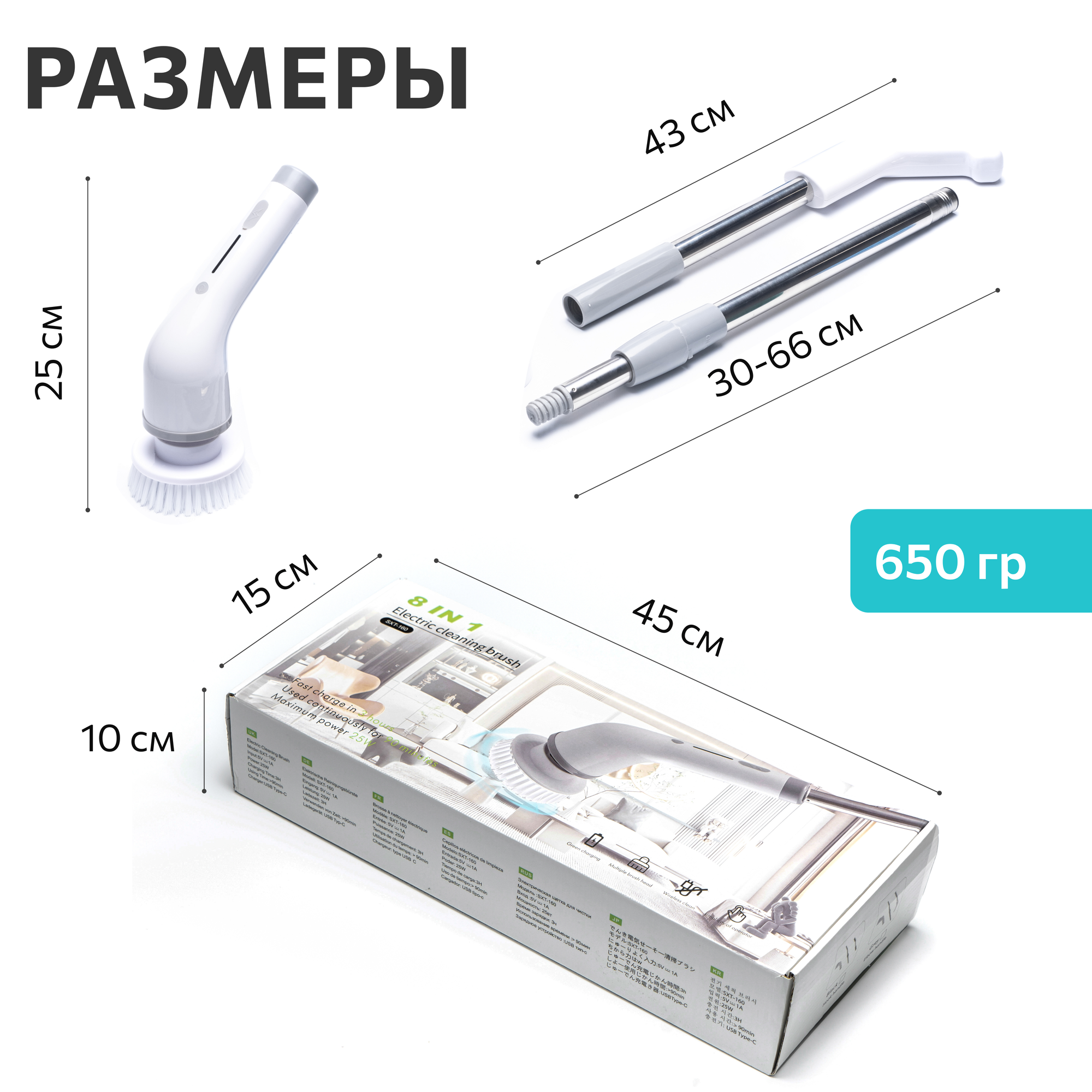 Электрическая щетка для уборки с набором 9 насадок поможет с легкостью убраться дома. Щетка электрическая имеет универсальный держатель - длинная выдвижная ручка