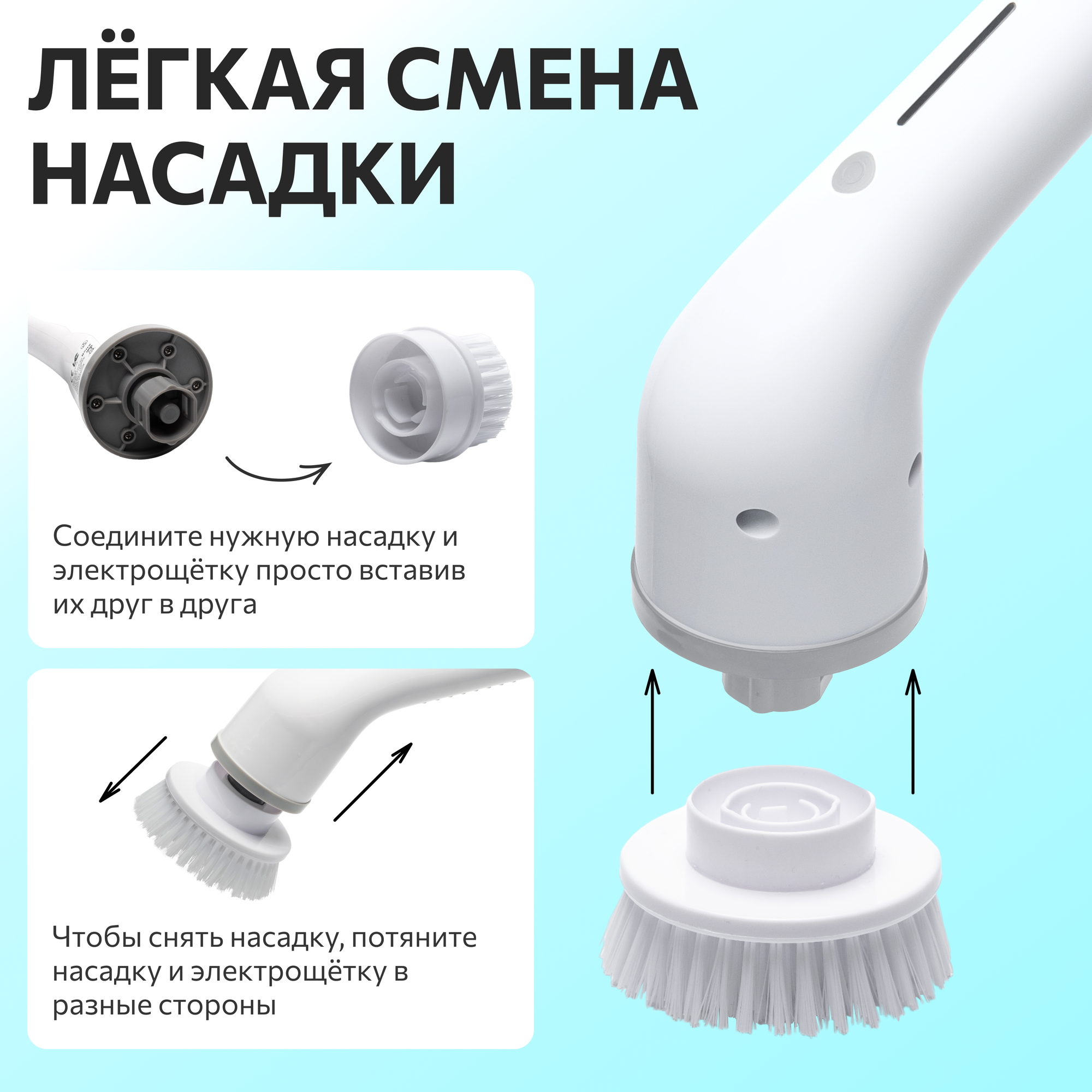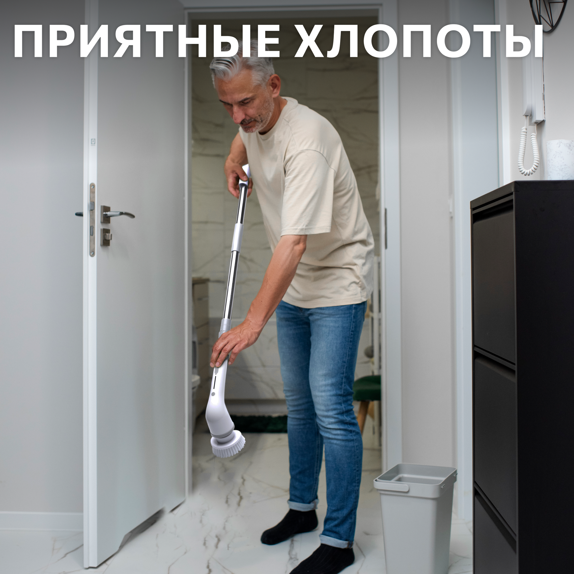 Электрическая щетка Fullbuy для уборки и чистки дома и ванны с набором сменных насадок